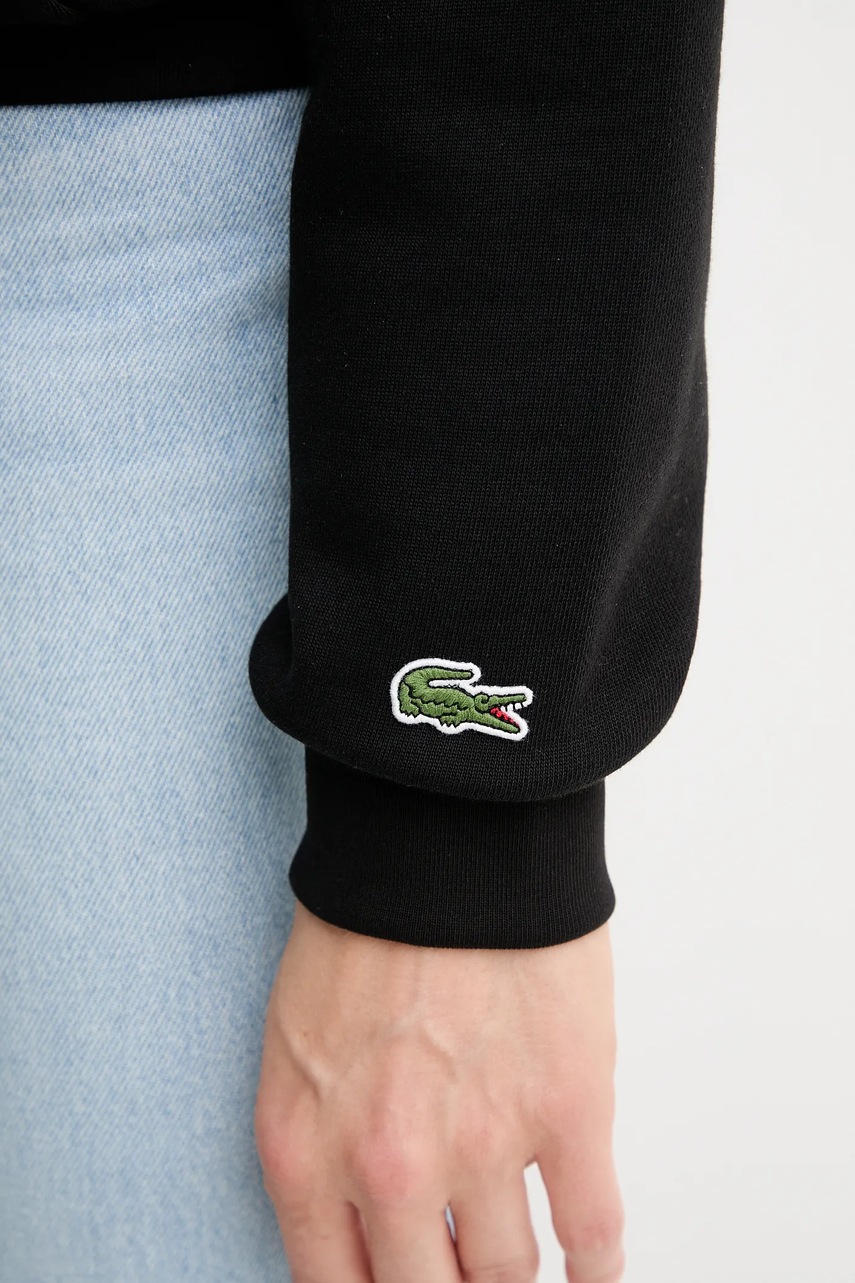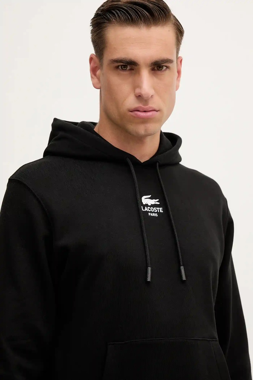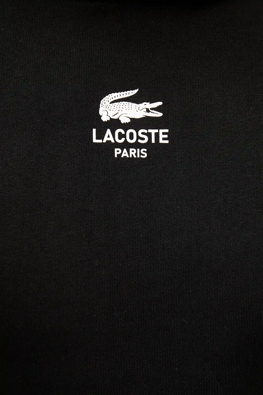Lacoste bluza bawełniana kolor czarny z kapturem z nadrukiem SH2740