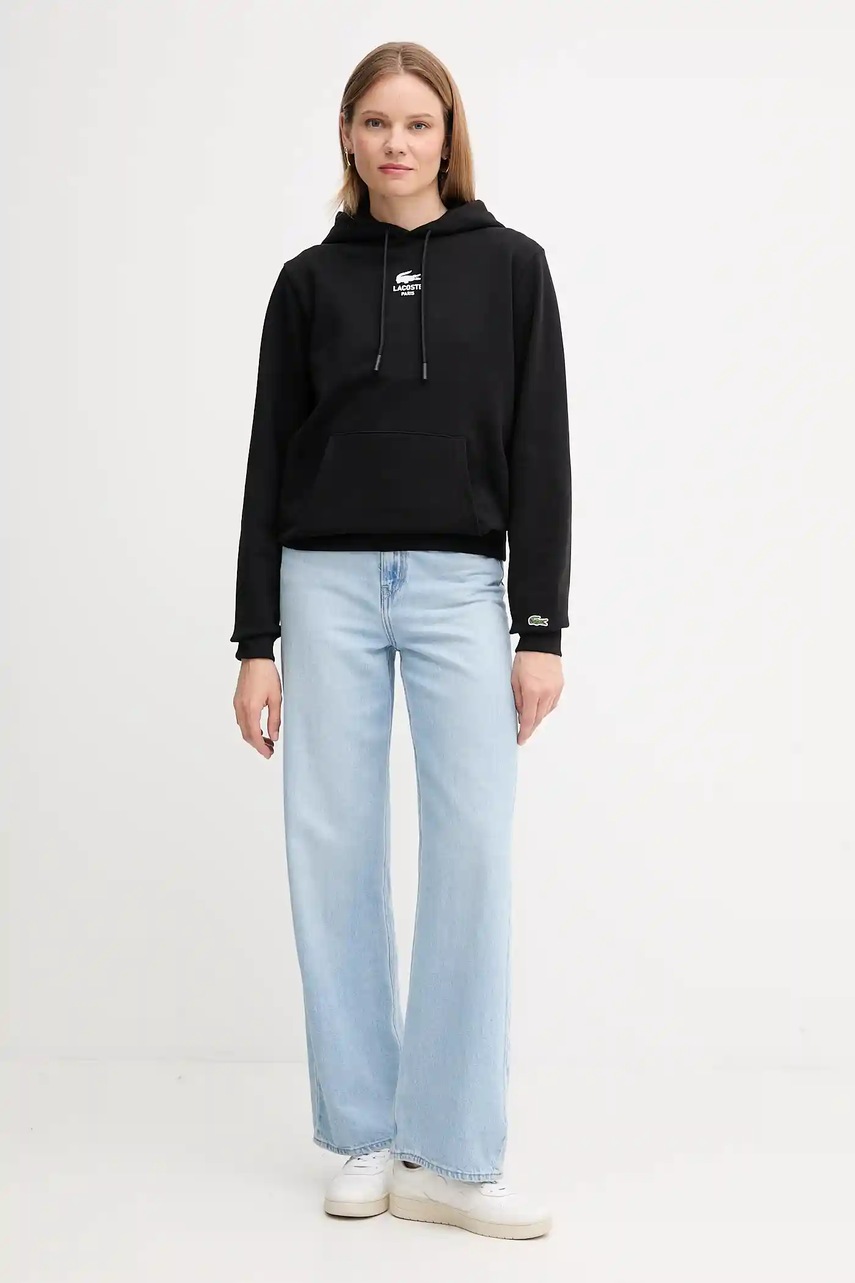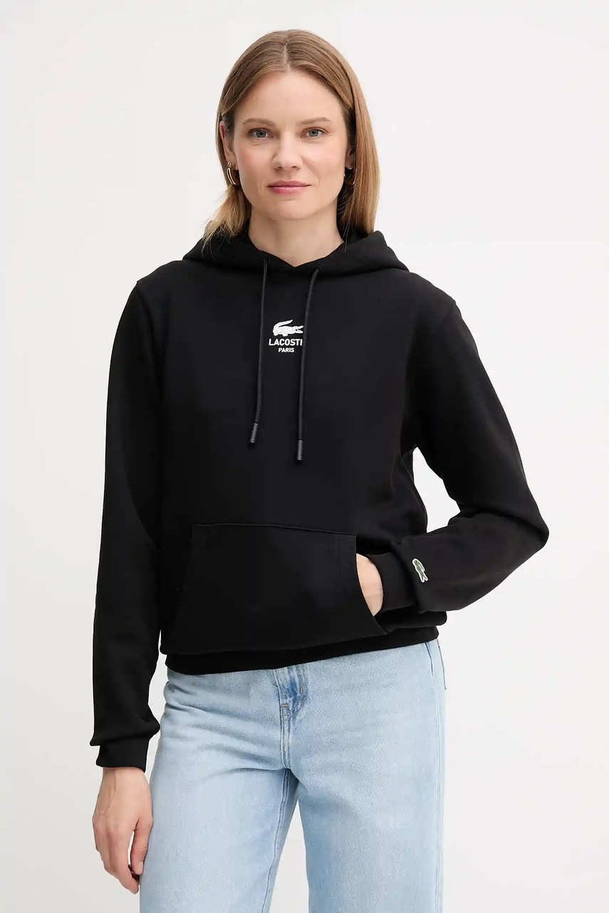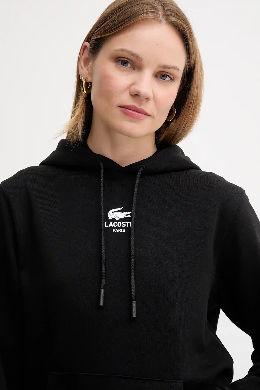 Lacoste bluza bawełniana kolor czarny z kapturem z nadrukiem SH2740