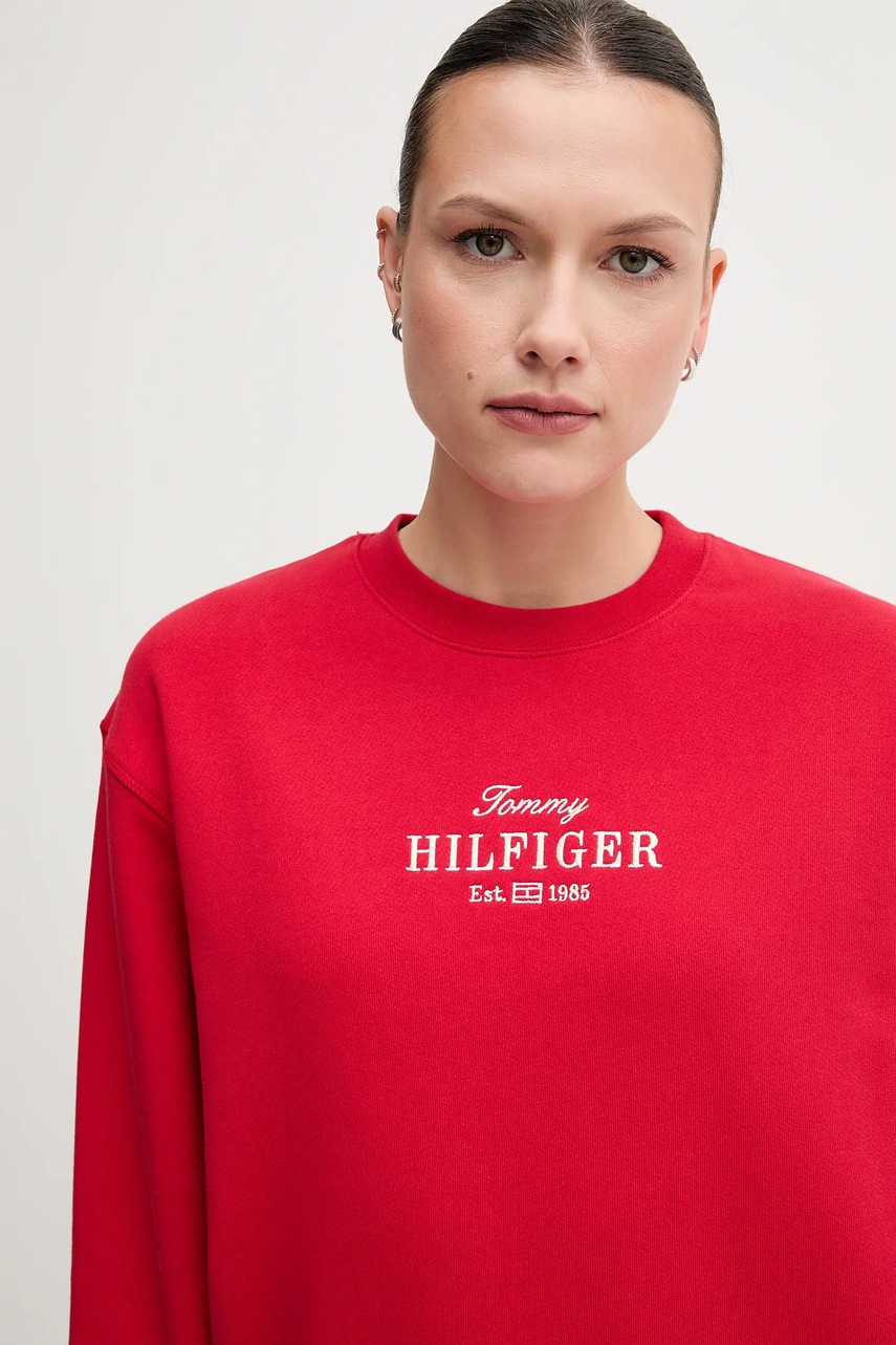 Tommy Hilfiger bluza bawełniana damska kolor czerwony z aplikacją WW0WW44631