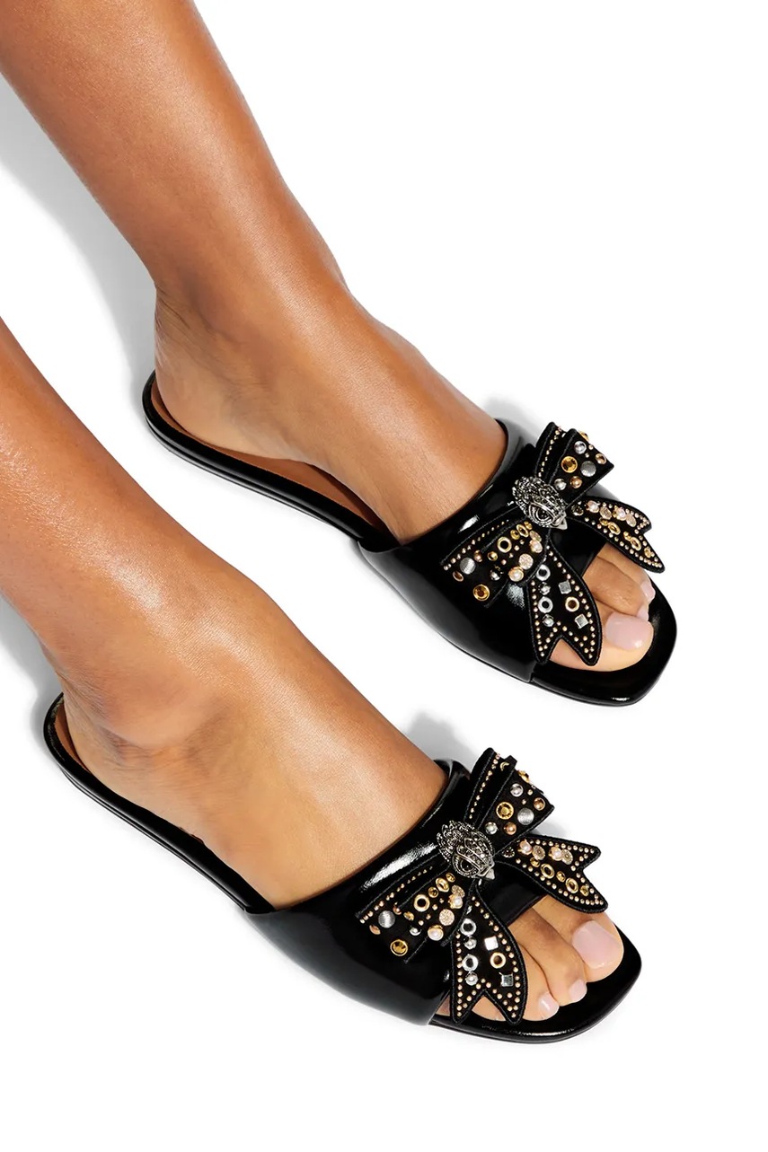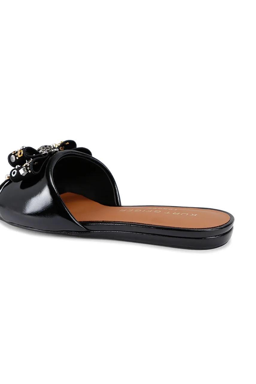 Kurt Geiger London klapki skórzane Kensington Bow Flat Sandal damskie kolor czarny 655705139