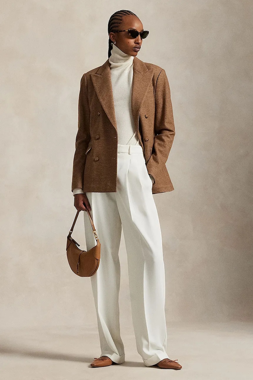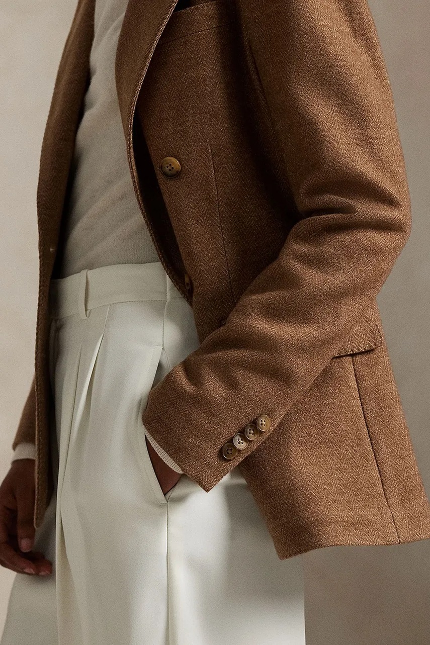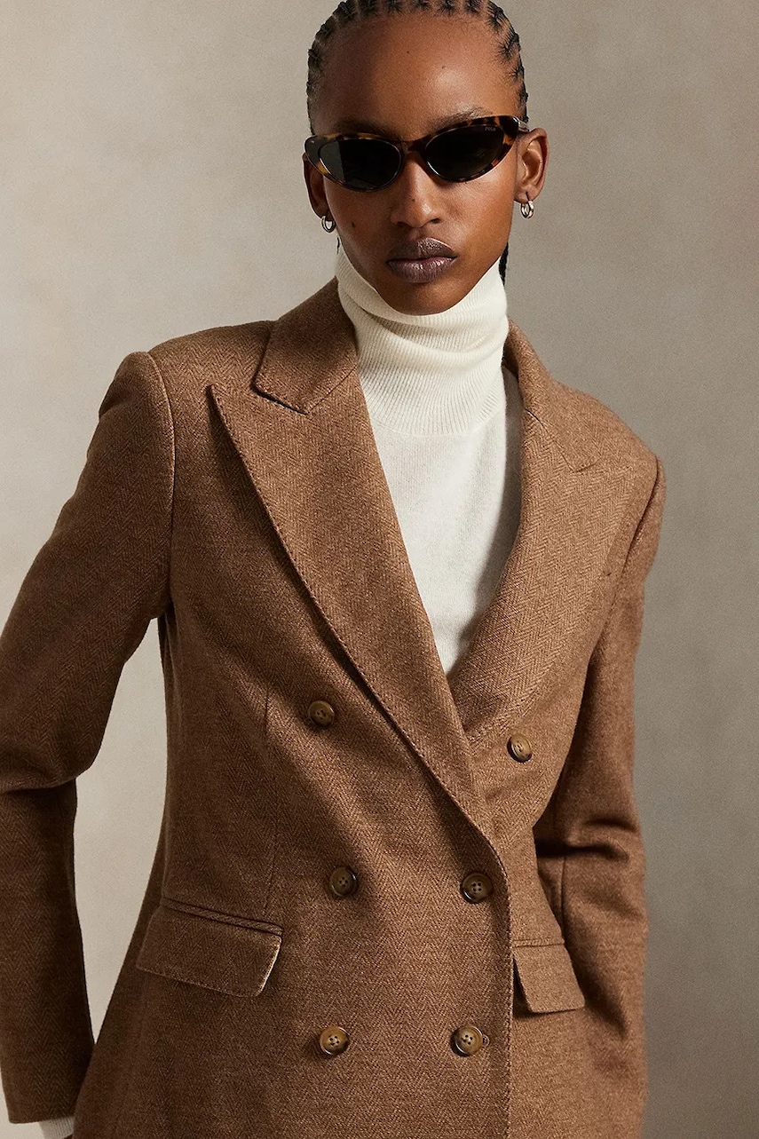 Polo Ralph Lauren marynarka z wełną kolor brązowy dwurzędowa gładka 211973828