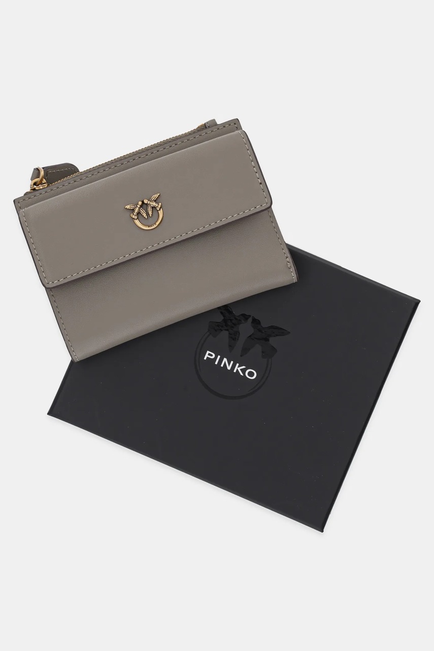 Pinko portfel skórzany damski kolor szary 103612 A0F1