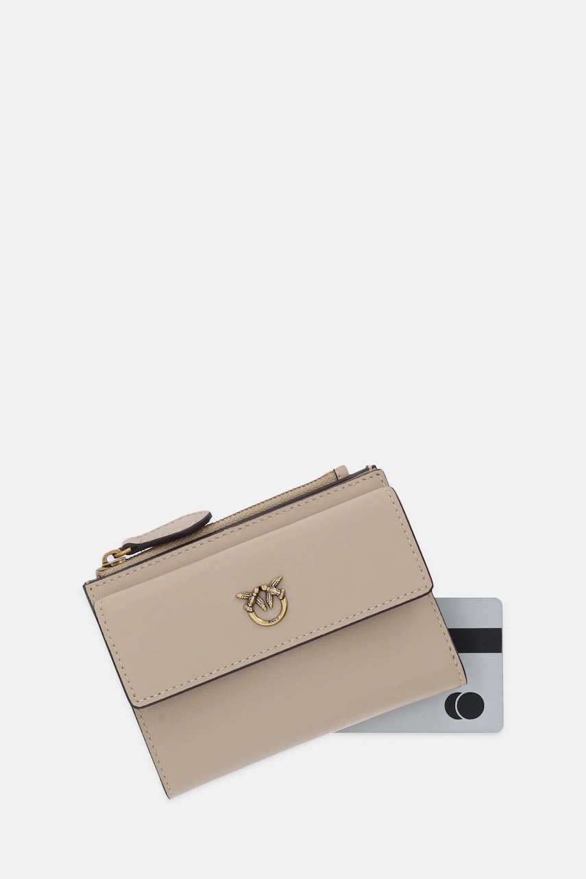 Pinko portfel skórzany damski kolor beżowy 103612 A0F1