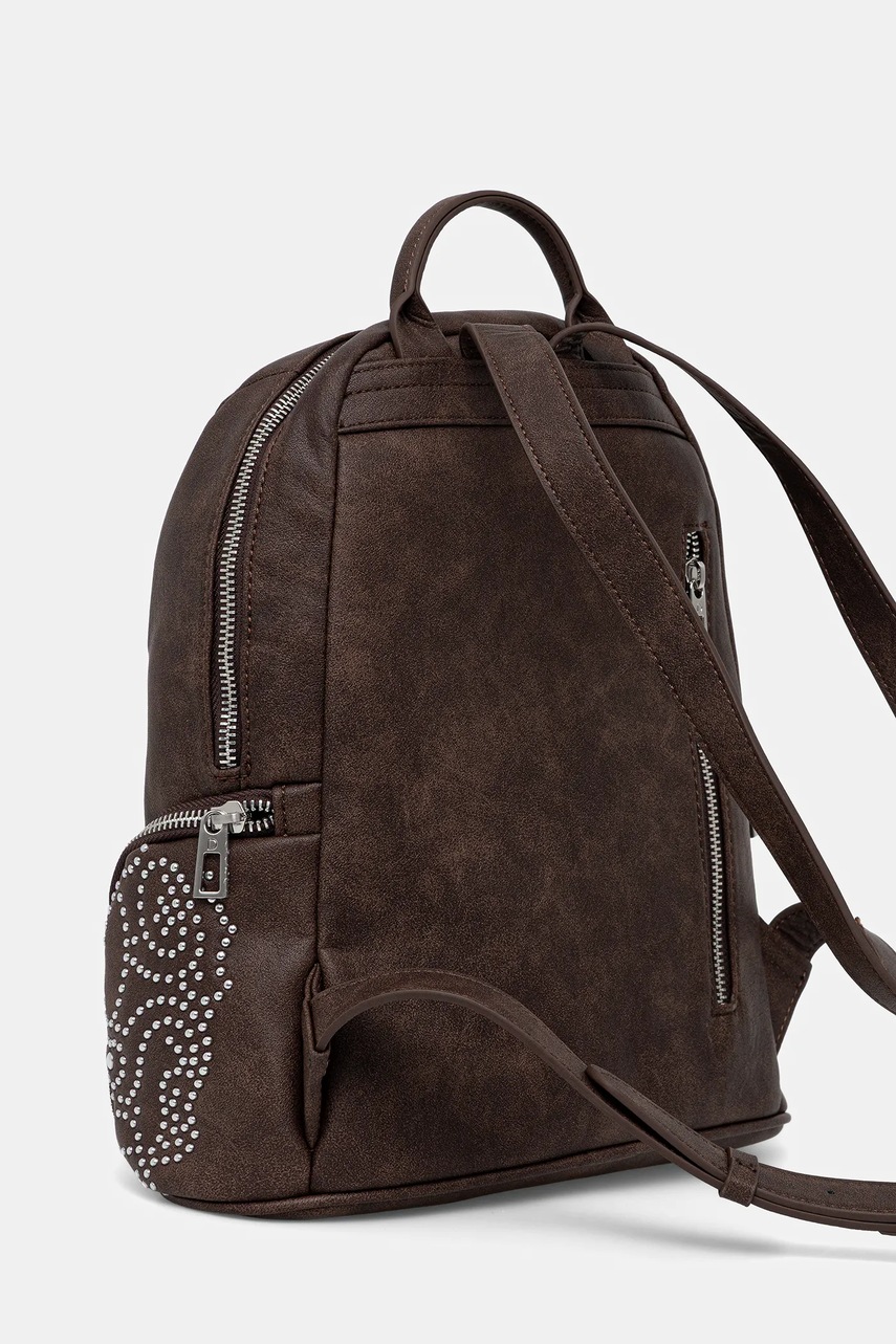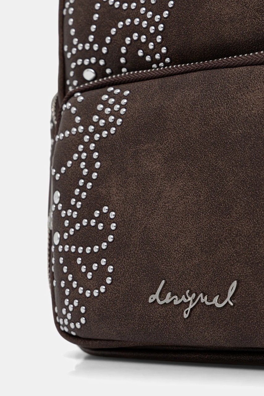 Desigual plecak POKER FACE CHEST damski kolor brązowy mały z aplikacją 25WAKP22