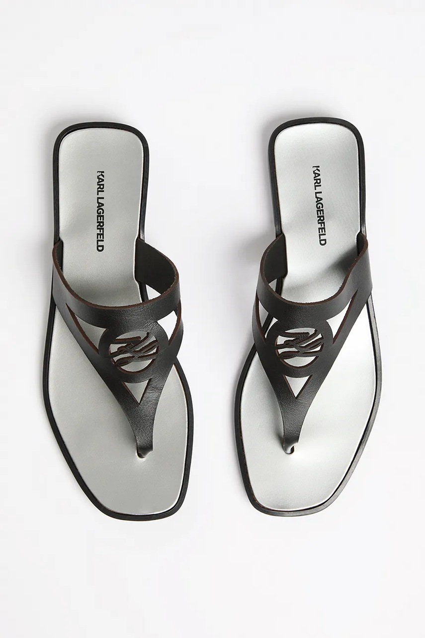 Karl Lagerfeld japonki skórzane SKOOT II damskie kolor czarny na płaskim obcasie KL80407