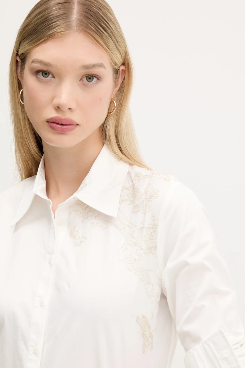 Desigual koszula BROIDFLO damska kolor biały regular z kołnierzykiem klasycznym 25WWCW13