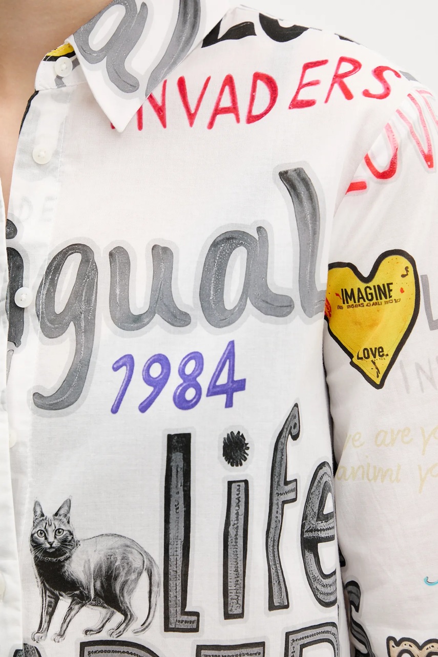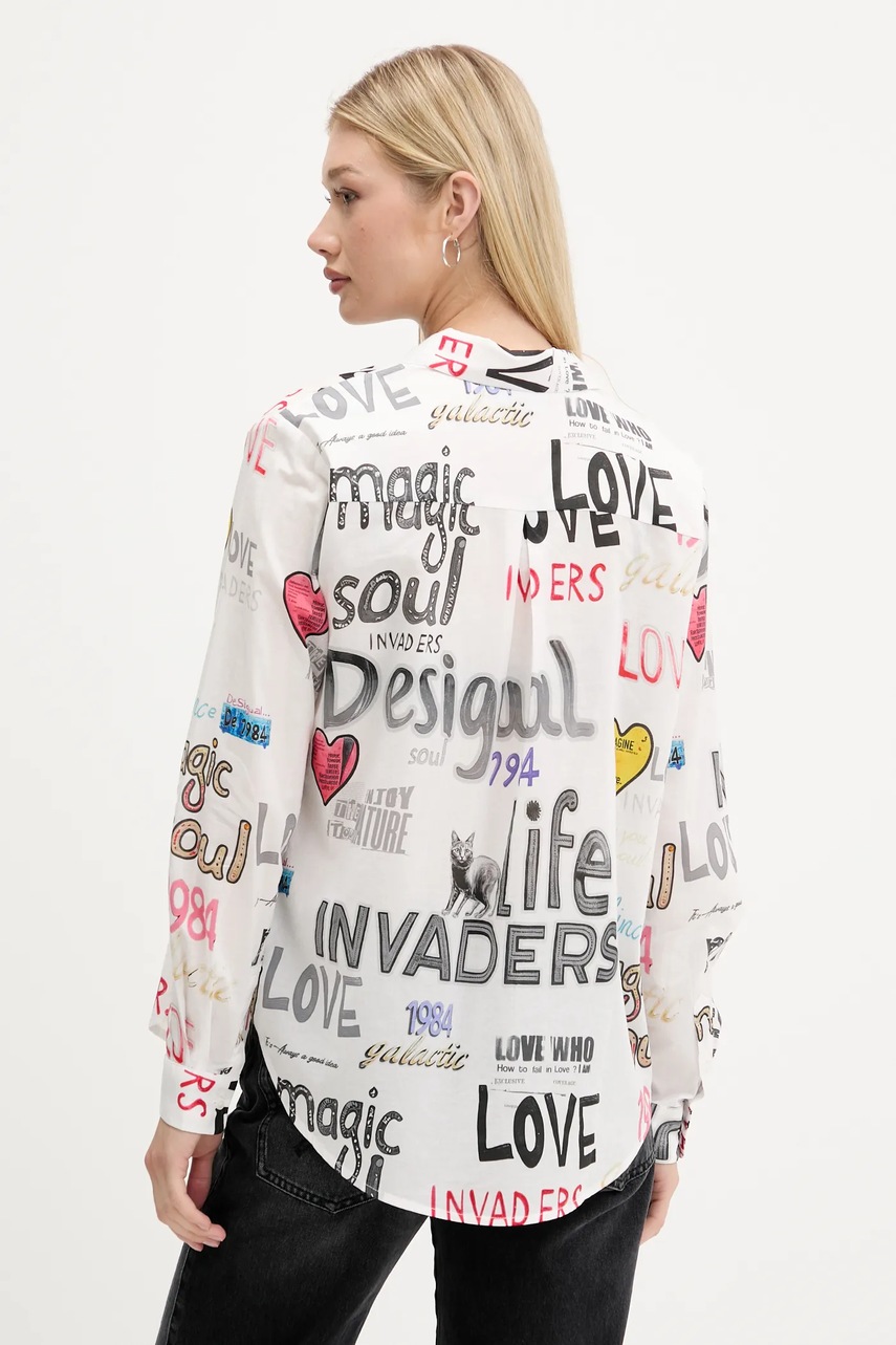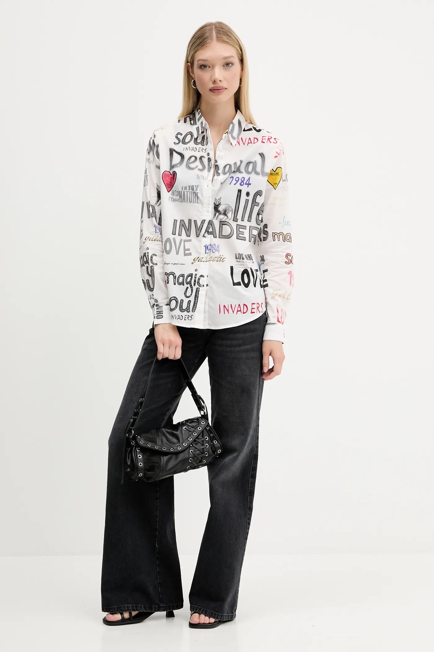 Desigual koszula bawełniana SOUL damska kolor szary relaxed z kołnierzykiem klasycznym 25WWCW10