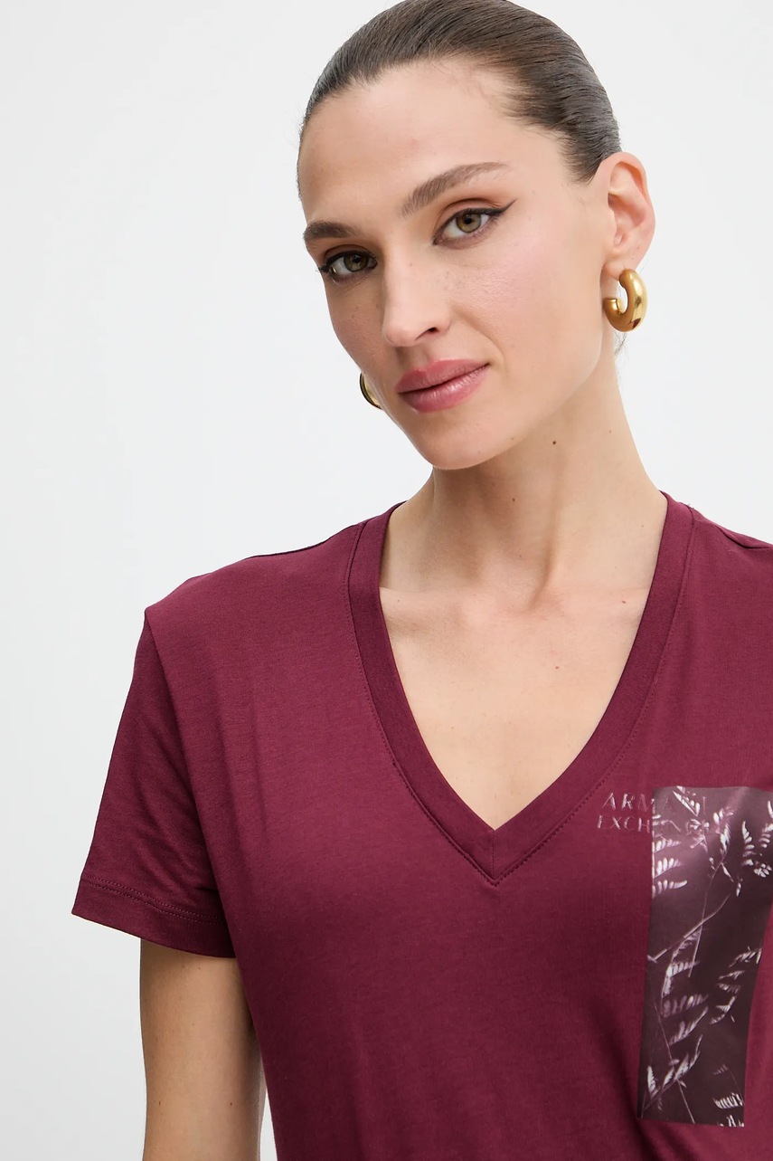 Armani Exchange t-shirt bawełniany damski kolor bordowy XW001358 AF10356