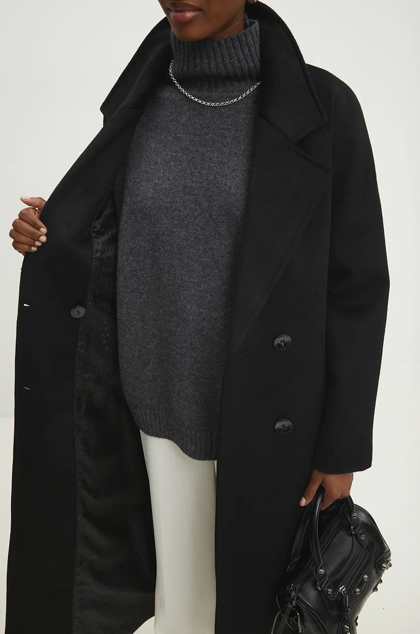 Skład: Materiał zasadniczy: 50 % Wełna, 40 % Poliester, 10 % Jedwab, Podszewka: 100 % Wiskoza