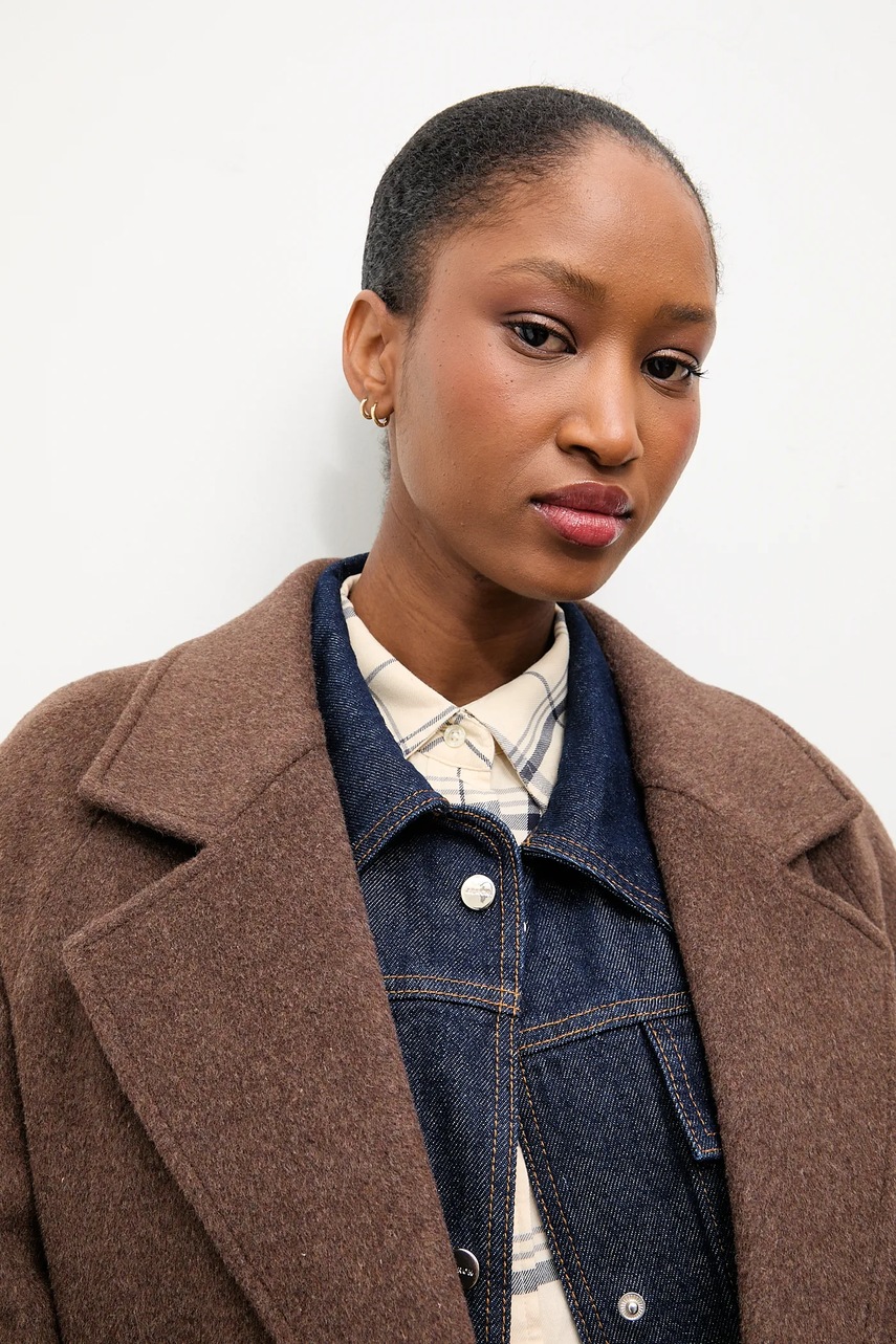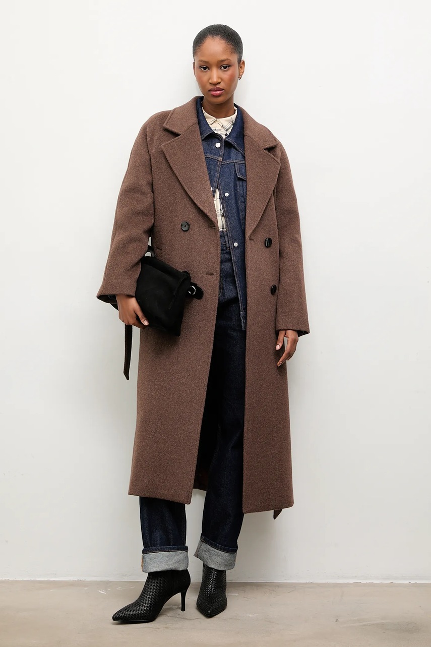 Answear.LAB płaszcz wełniany kolor brązowy przejściowy dwurzędowy