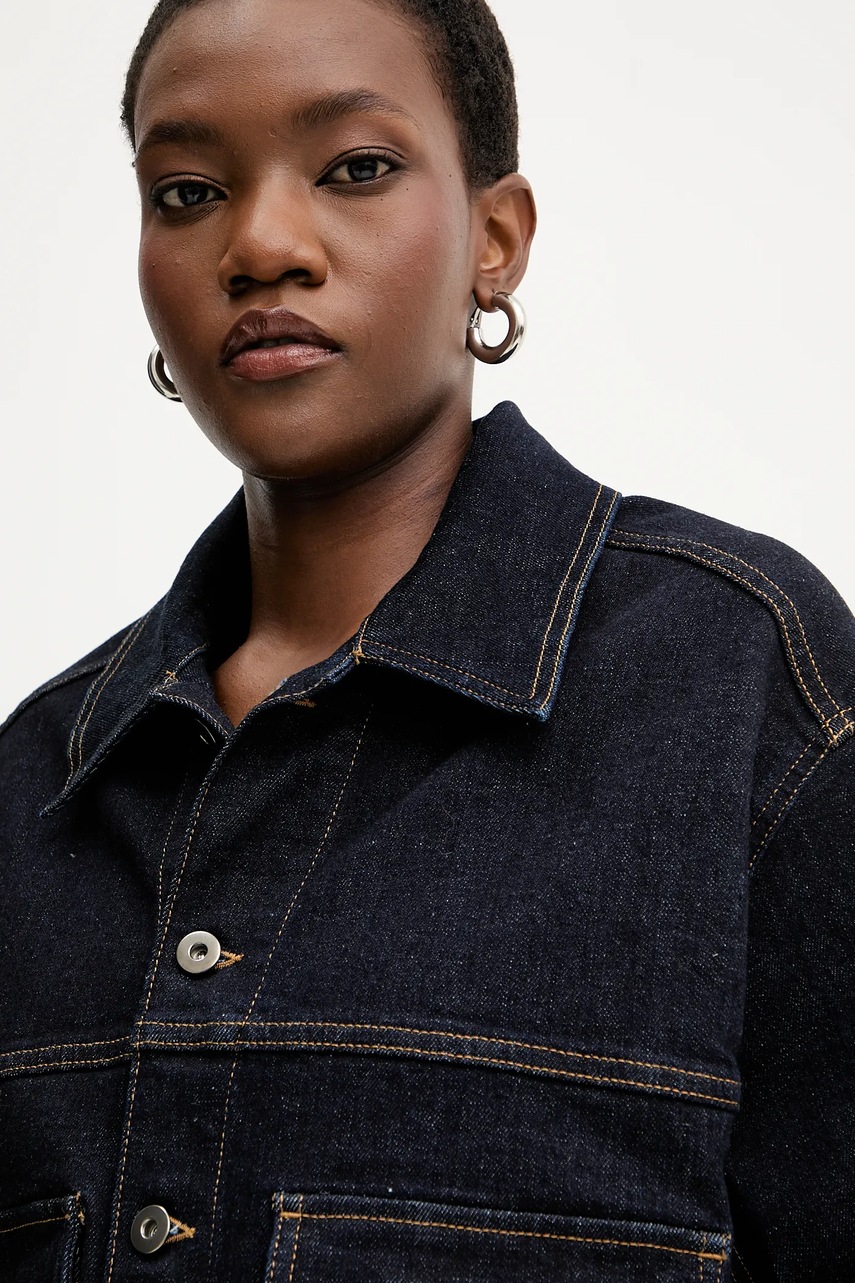 Liviana Conti kurtka jeansowa kolor granatowy przejściowa F5WY75