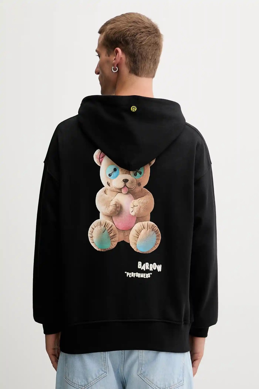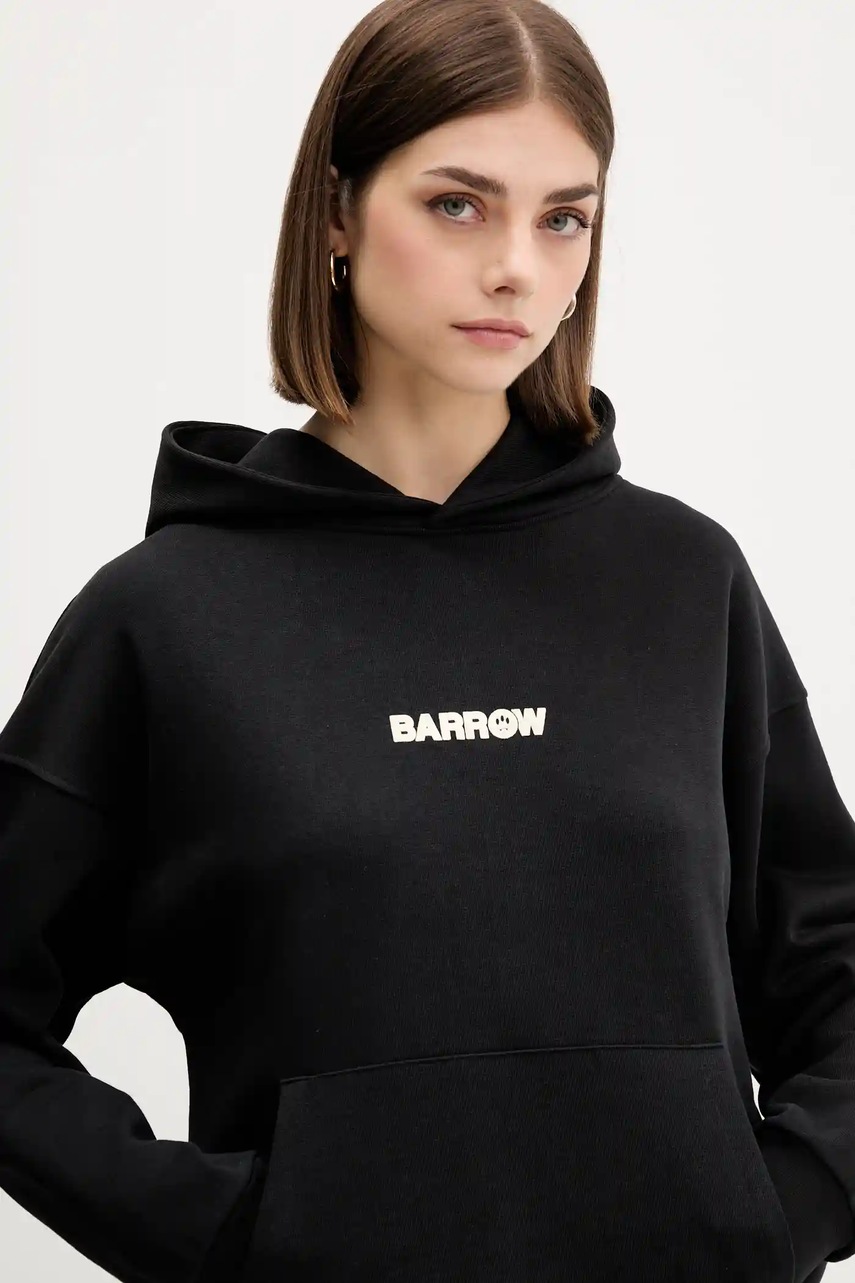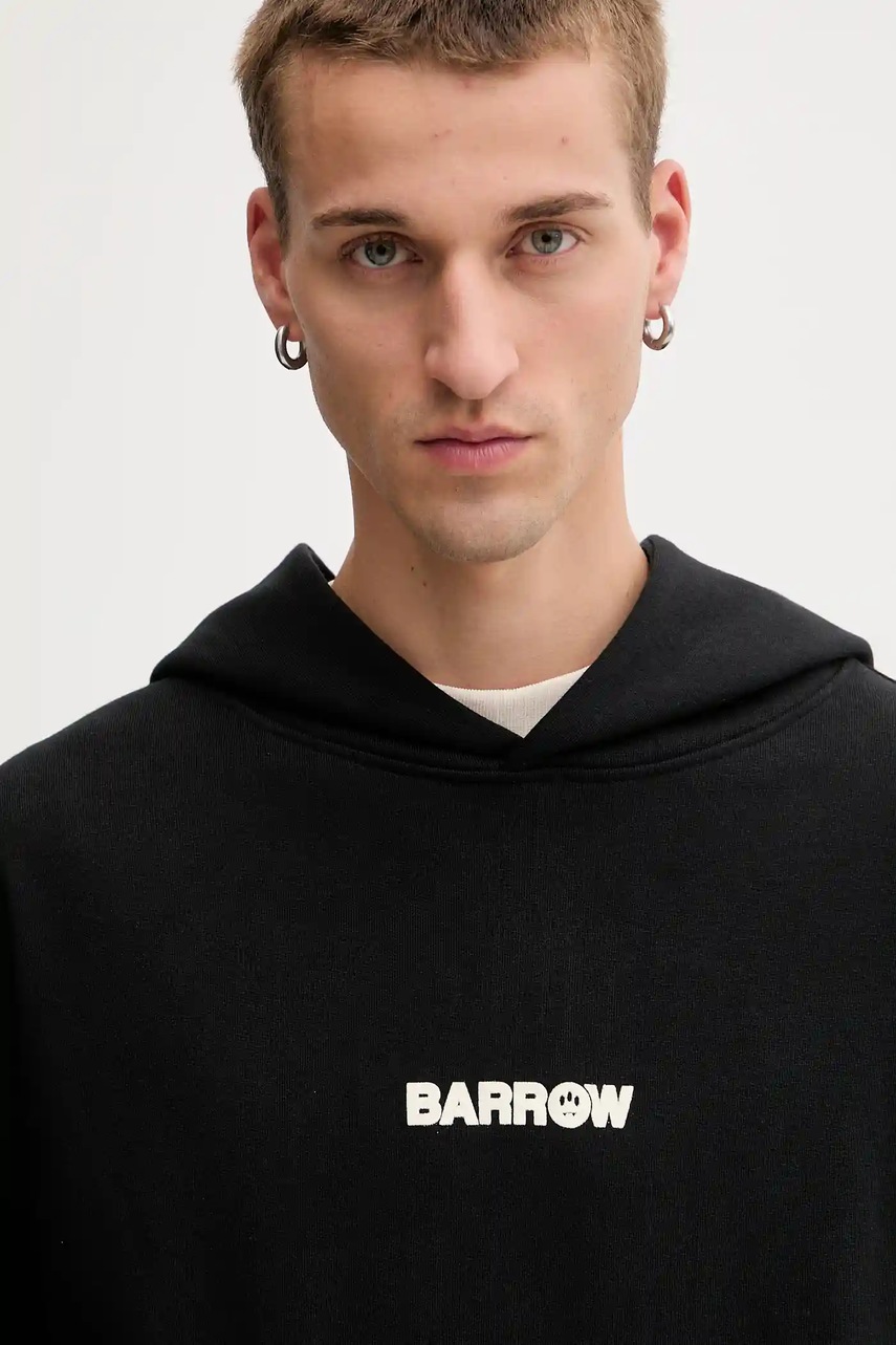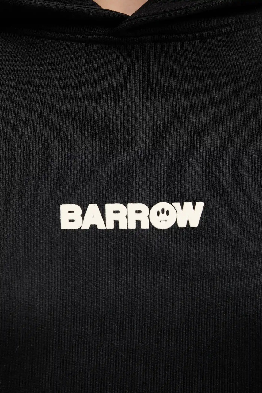 Barrow bluza bawełniana kolor czarny z kapturem wzorzysta F5BWUAHS047