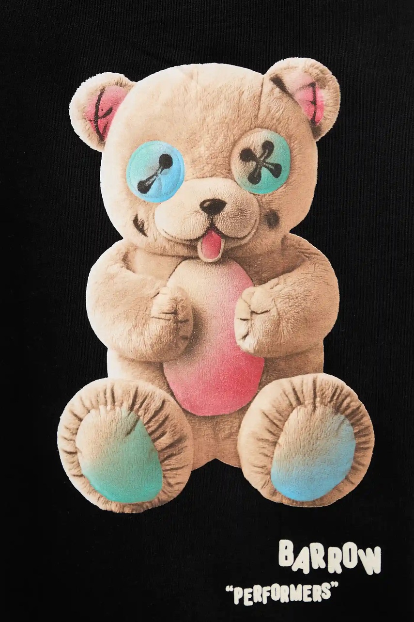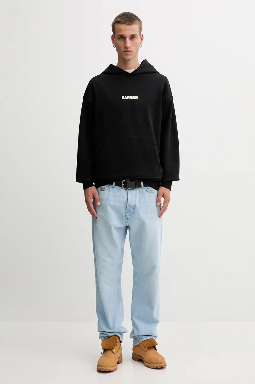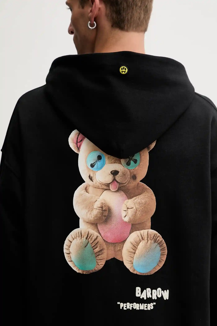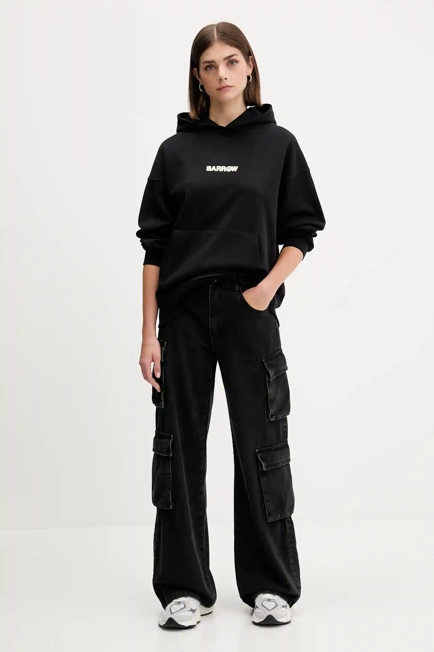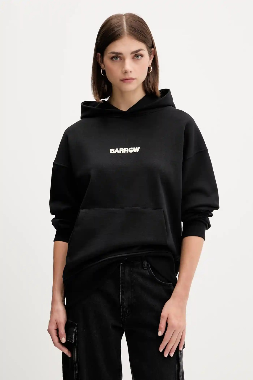 Barrow bluza bawełniana kolor czarny z kapturem wzorzysta F5BWUAHS047