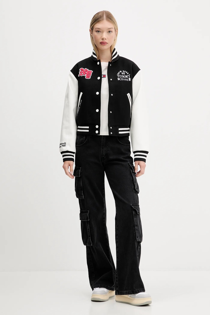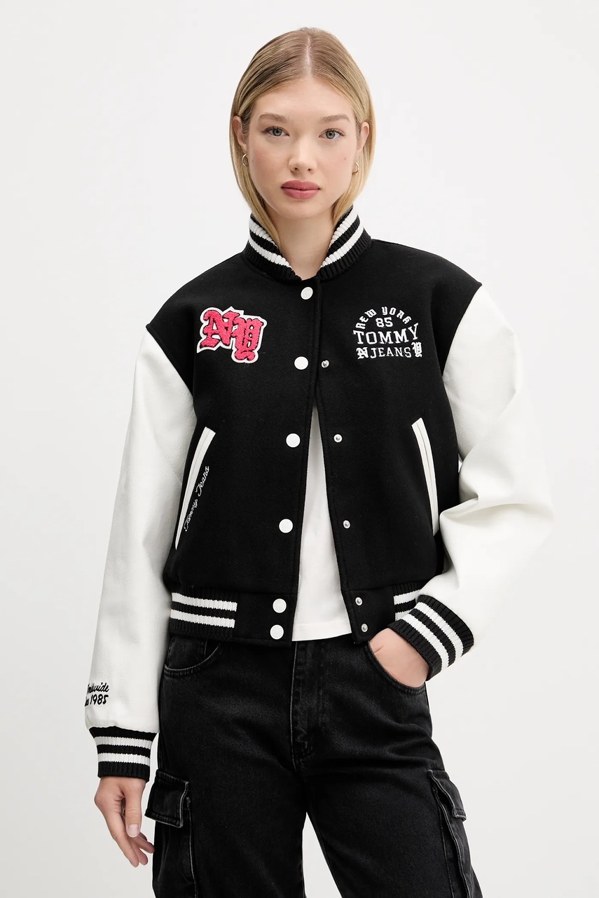 Tommy Jeans kurtka bomber z wełną kolor czarny przejściowa DW0DW21628