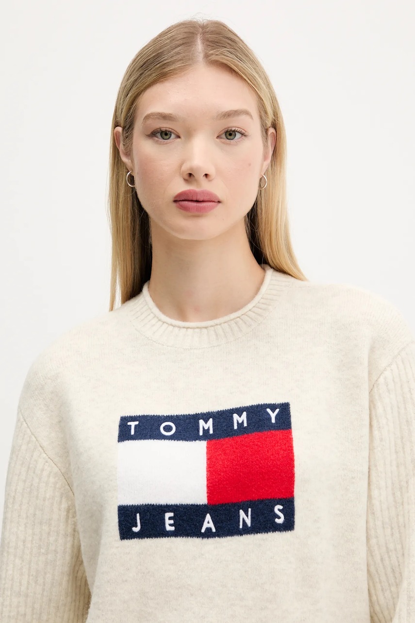 Tommy Jeans sweter z dodatkiem wełny damski kolor beżowy lekki DW0DW21782