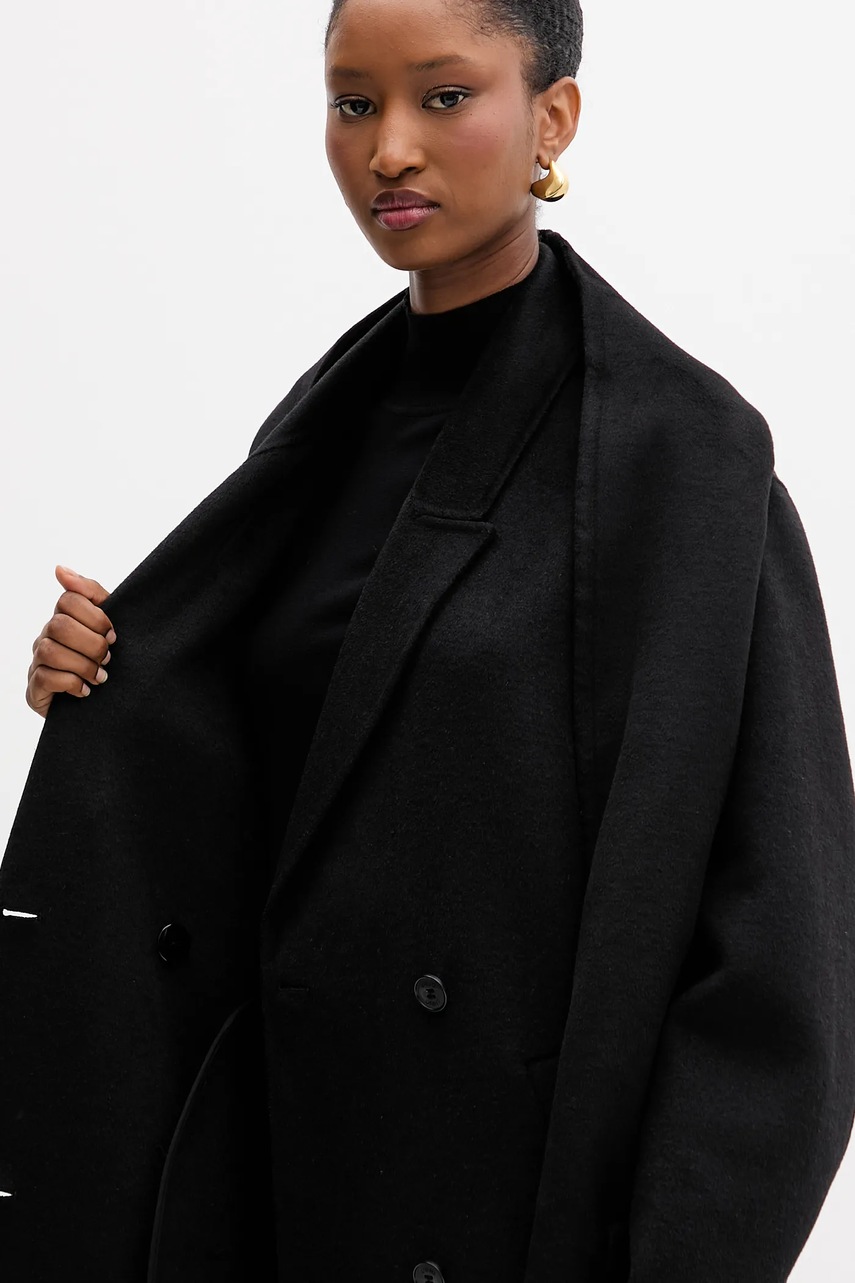 Liu Jo płaszcz z wełną kolor czarny MF5025 T4627