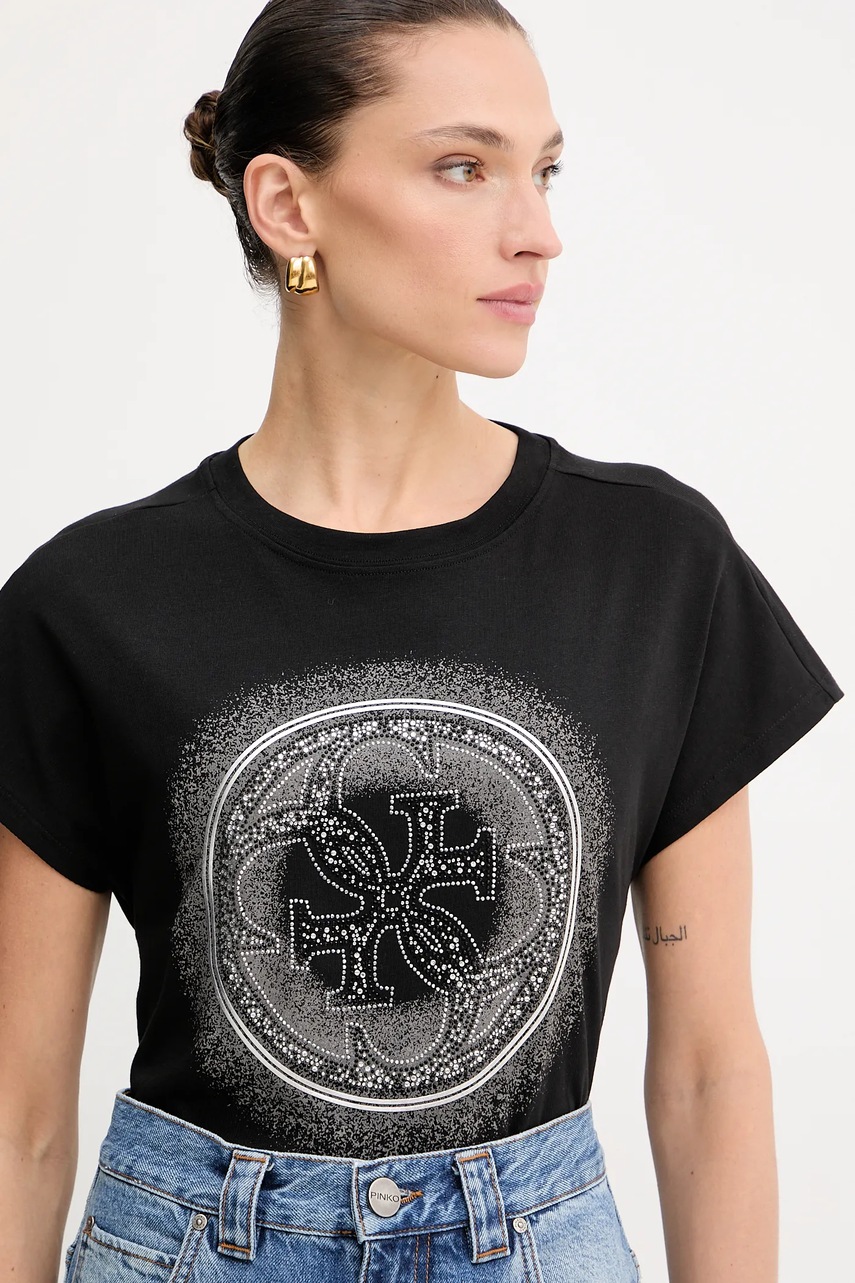 Guess t-shirt bawełniany 4G damski kolor czarny W5YI14 I3Z14