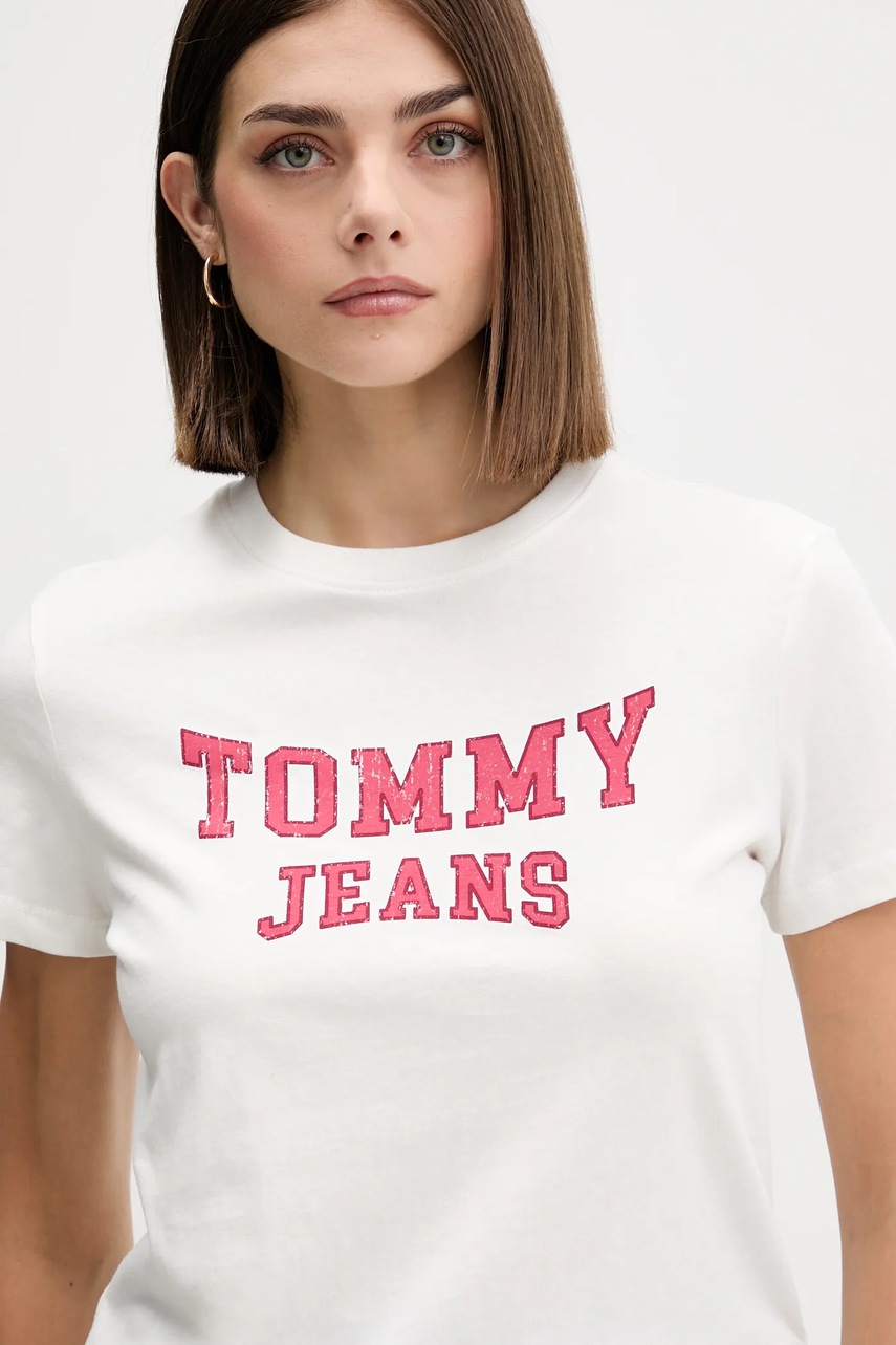 Tommy Jeans t-shirt bawełniany damski kolor beżowy DW0DW21966