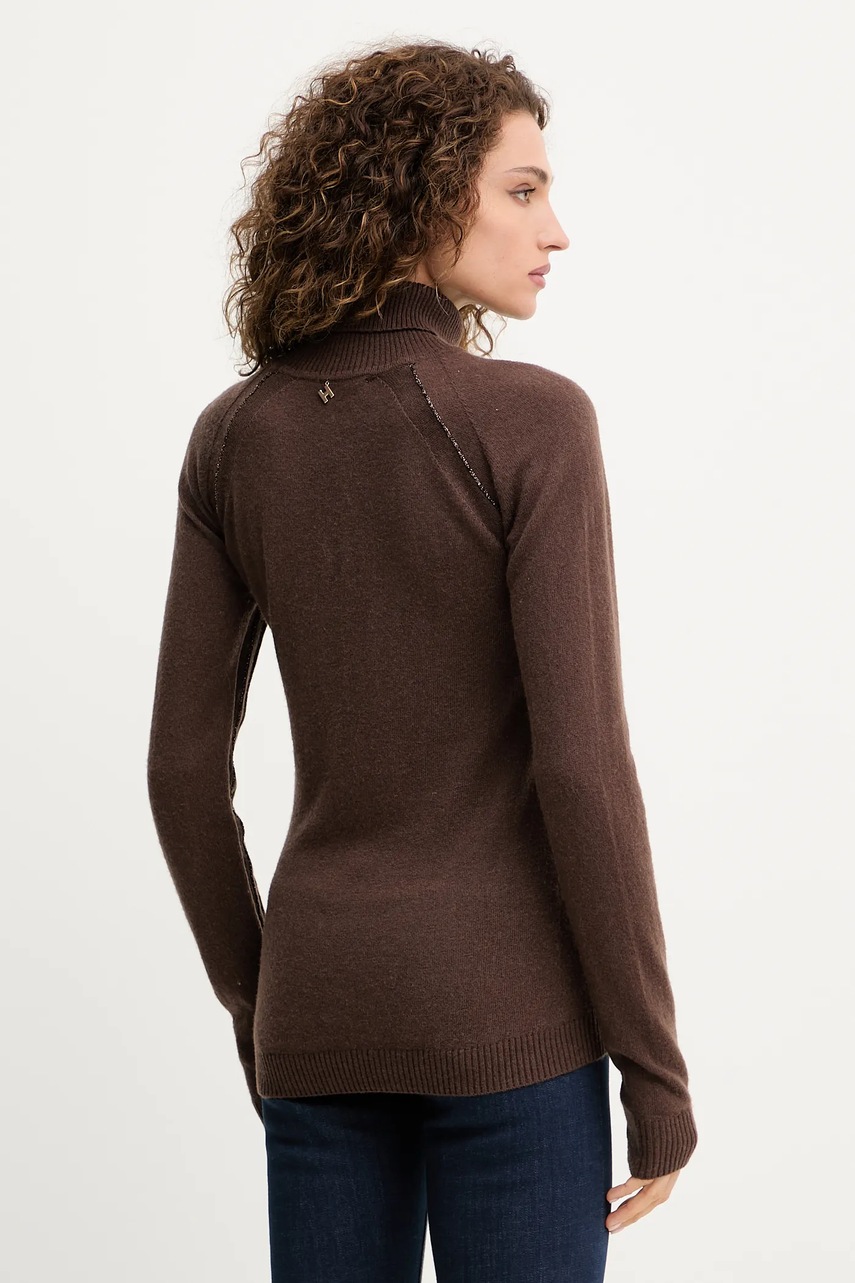 Silvian Heach sweter z domieszką wełny SAM damski kolor brązowy z golfem GPA25244LU