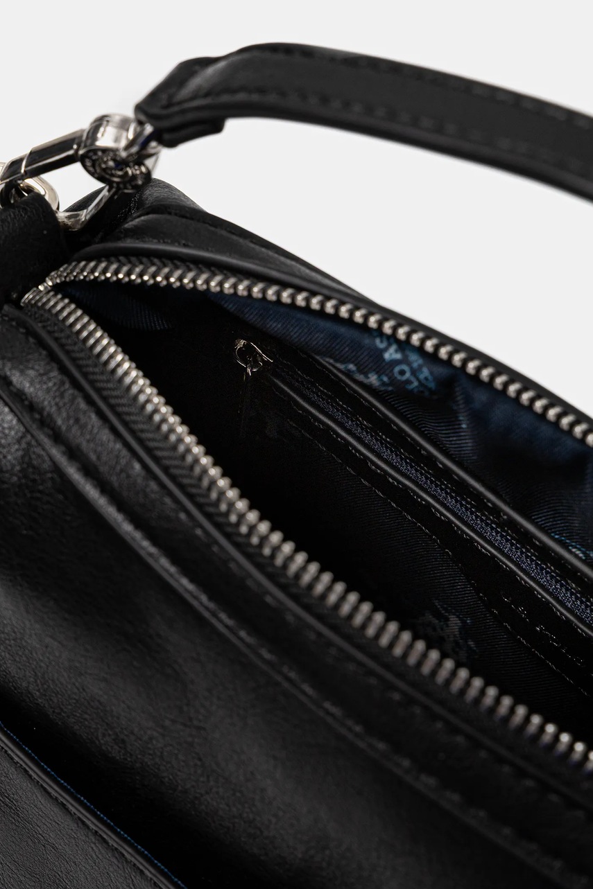- Mniejsza torebka z podszewką. Model z dwiema kieszonkami wewnętrznymi: jedną wsuwaną i jedna zapinana na suwak.