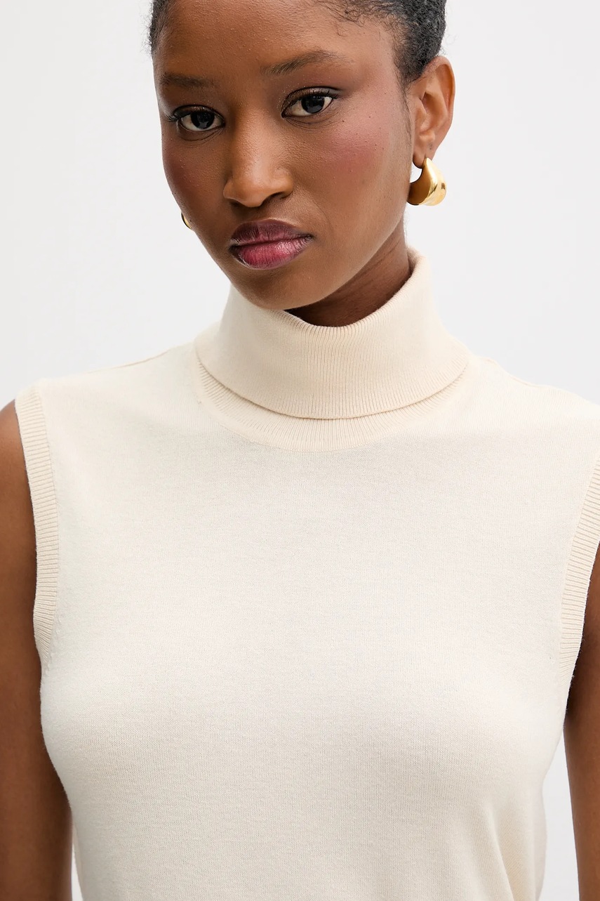 Silvian Heach kamizelka WARMI damski kolor beżowy lekki z golfem GPA25037LU