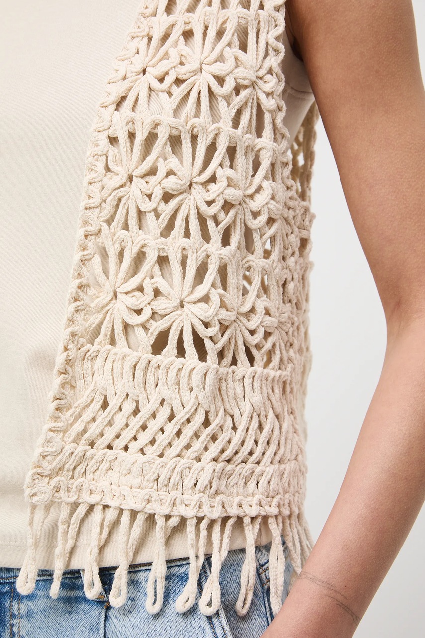 - Model z ozdobnymi frędzlami.