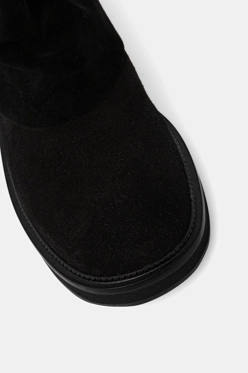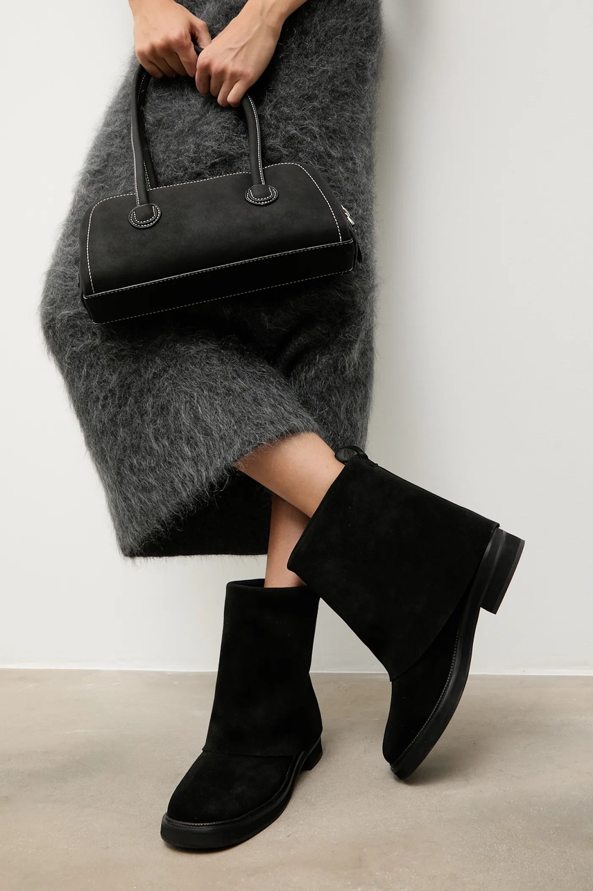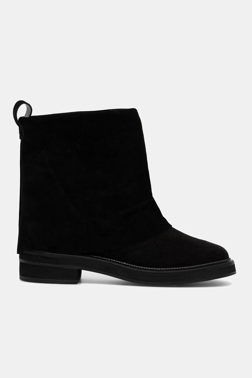 Answear.LAB botki zamszowe kolor czarny na płaskim obcasie