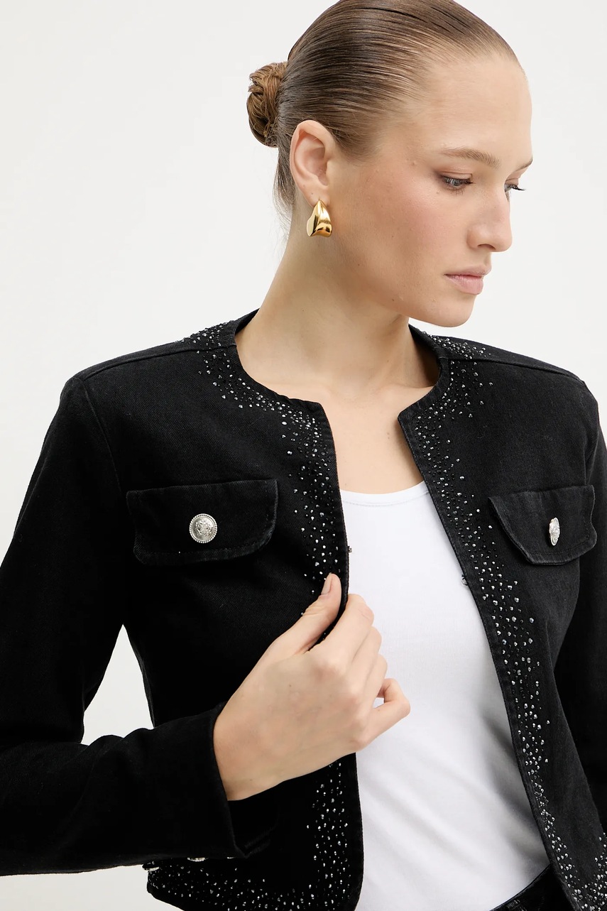 Liu Jo marynarka jeansowa kolor czarny jednorzędowa UF5124.DS025