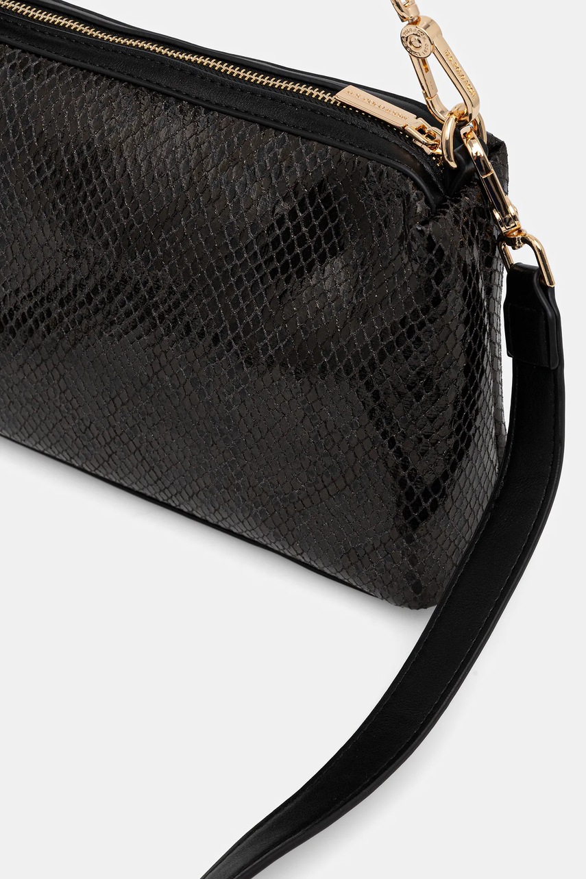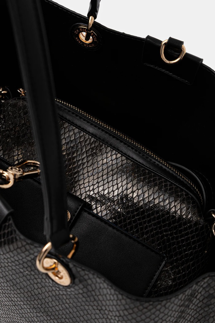 - Mniejsza torebka posiada długi uchwyt i odpinany pasek z regulacją.