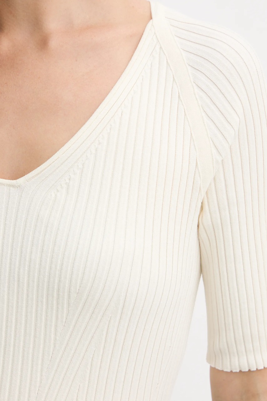 - Prążkowana struktura materiału sprawia, że jest on niezwykle elastyczny i doskonale przylega do ciała.