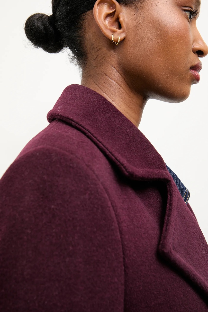 Answear Lab płaszcz wełniany kolor bordowy przejściowy dwurzędowy