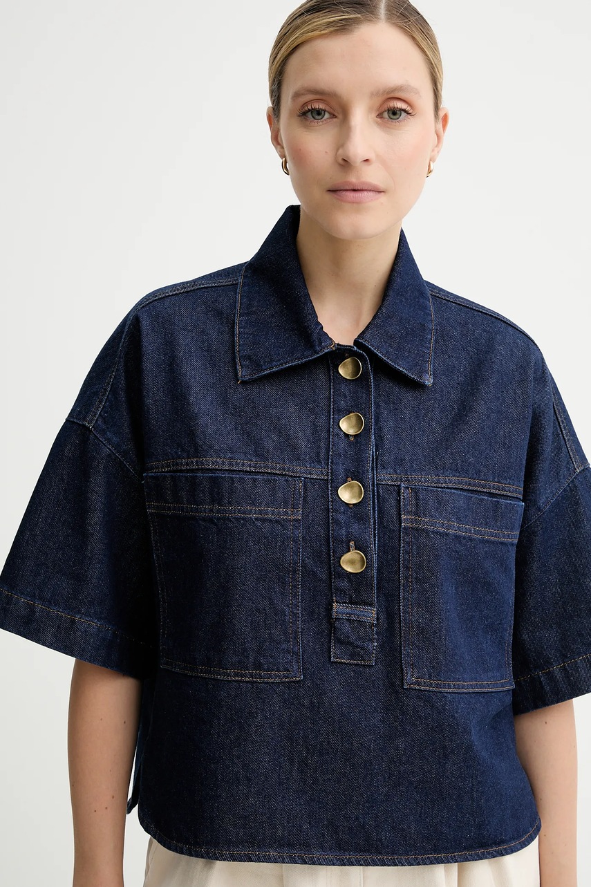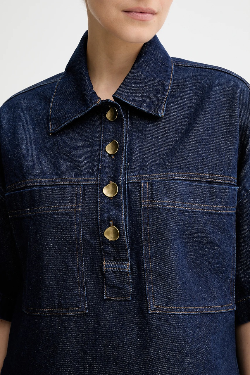 Sessun bluzka jeansowa damska kolor niebieski gładka 25110014