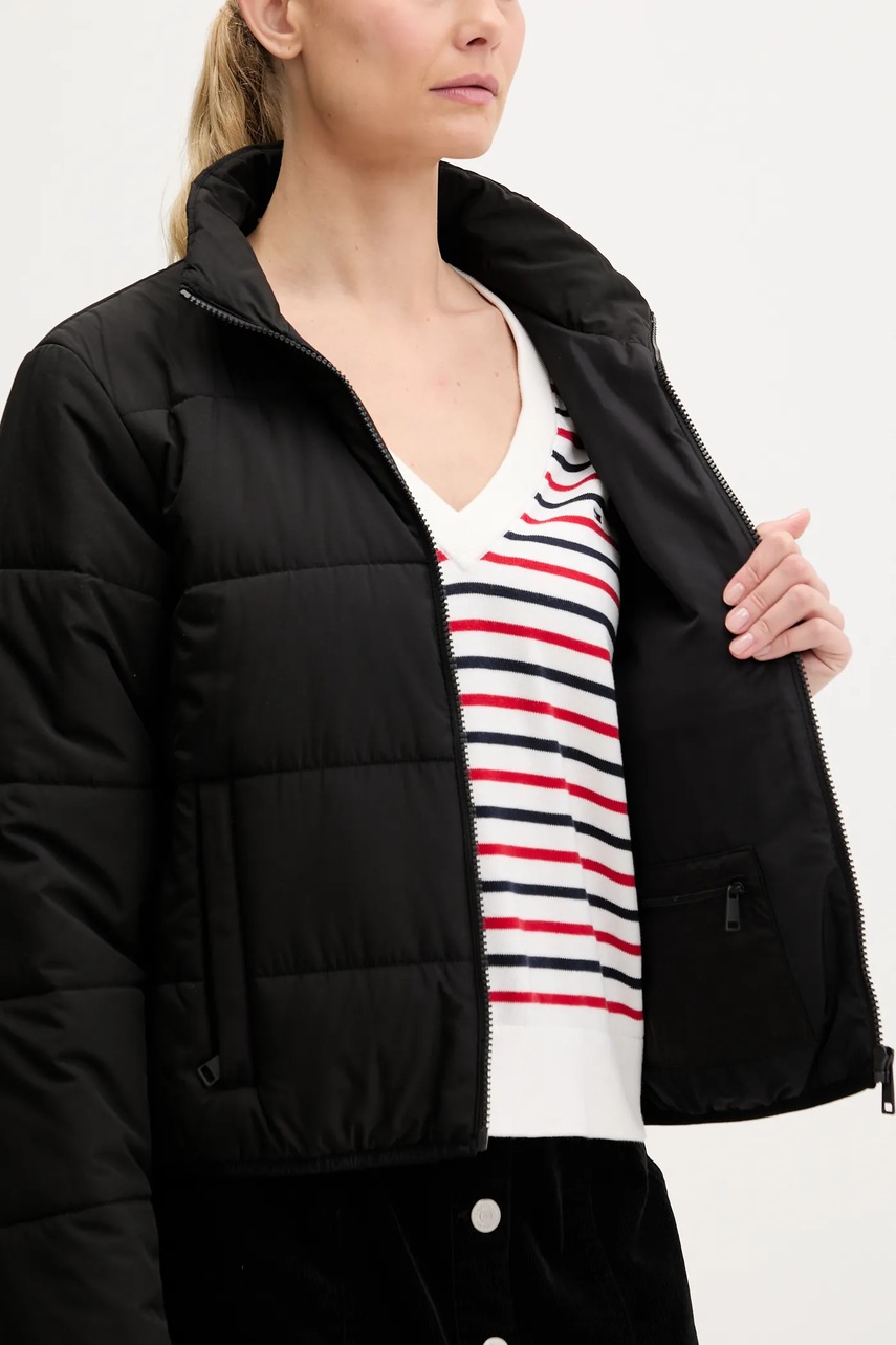- Podwyższony kołnierz gwarantuje dodatkową ochronę przed chłodem.