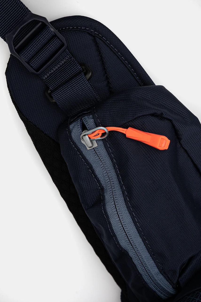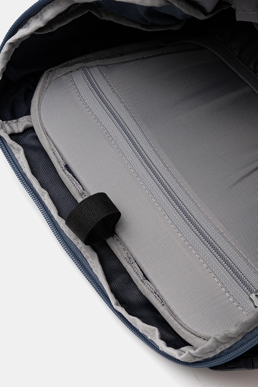- Wbudowany pas piersiowy z regulacją stabilizuje plecak i dba o prawidłowy rozkład ciężaru.