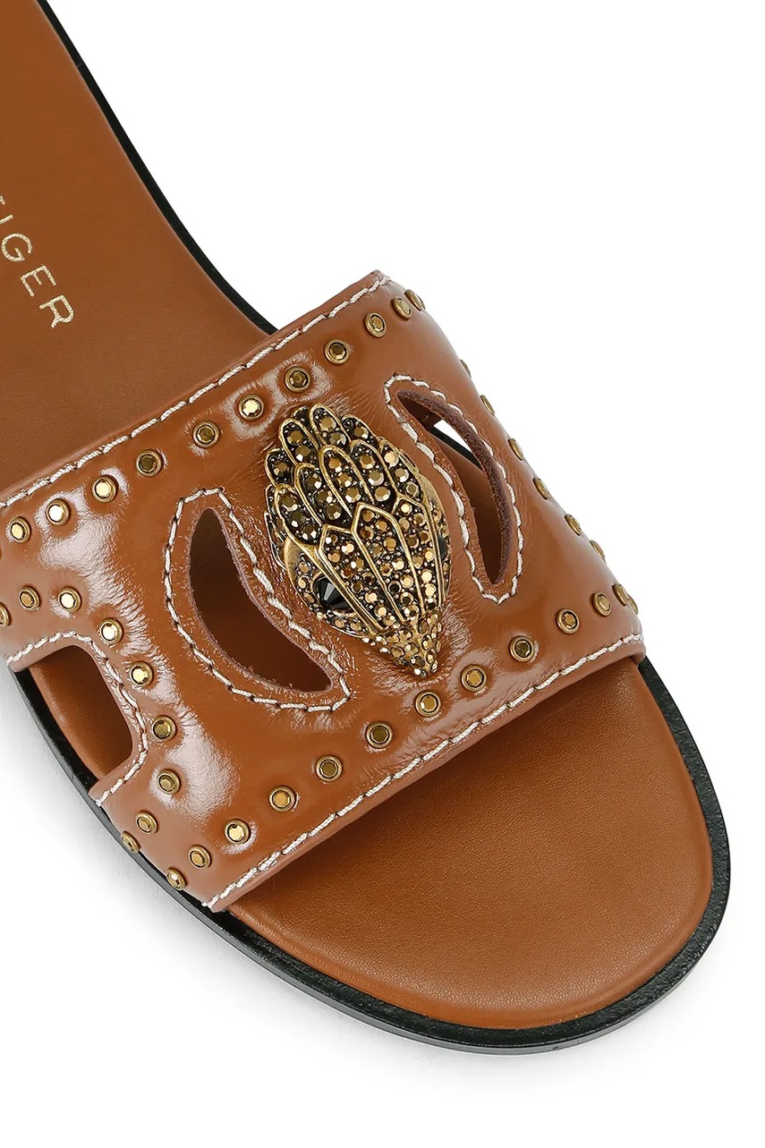 Kurt Geiger London klapki skórzane Eagle Stud Cut Out Flat damskie kolor beżowy 4734433309