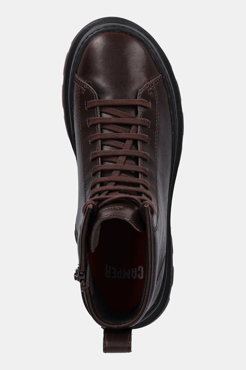 Camper botki skórzane Brutus+ damskie kolor brązowy na płaskim obcasie K400816-002