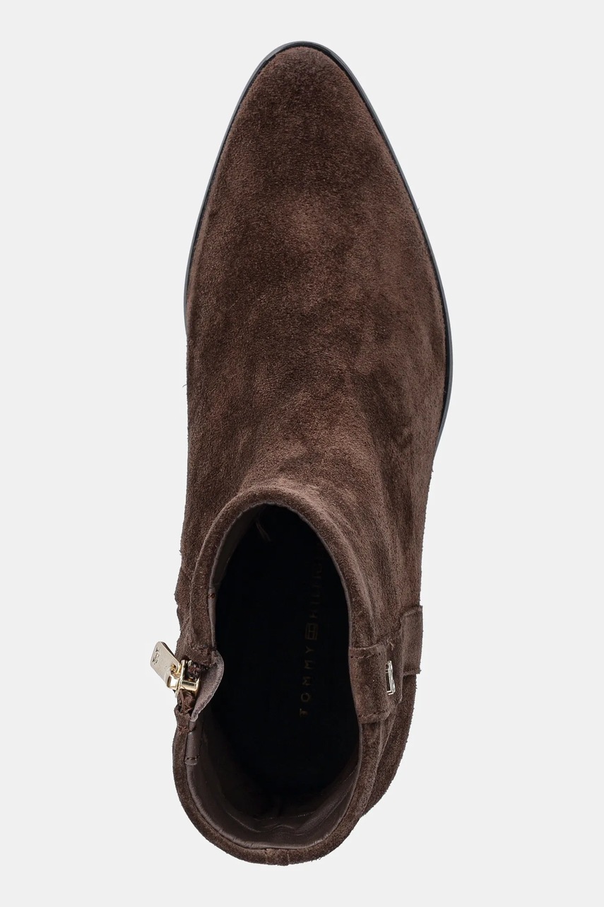 Tommy Hilfiger botki zamszowe TH SUEDE POINTY ZIP BOOTIE damskie kolor brązowy na słupku FW0FW08981