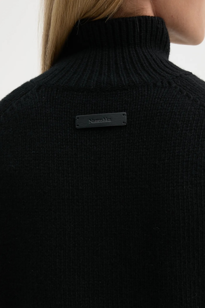 Nanushka sweter wełniany SONORE damski kolor czarny z półgolfem NW24FWSW42500