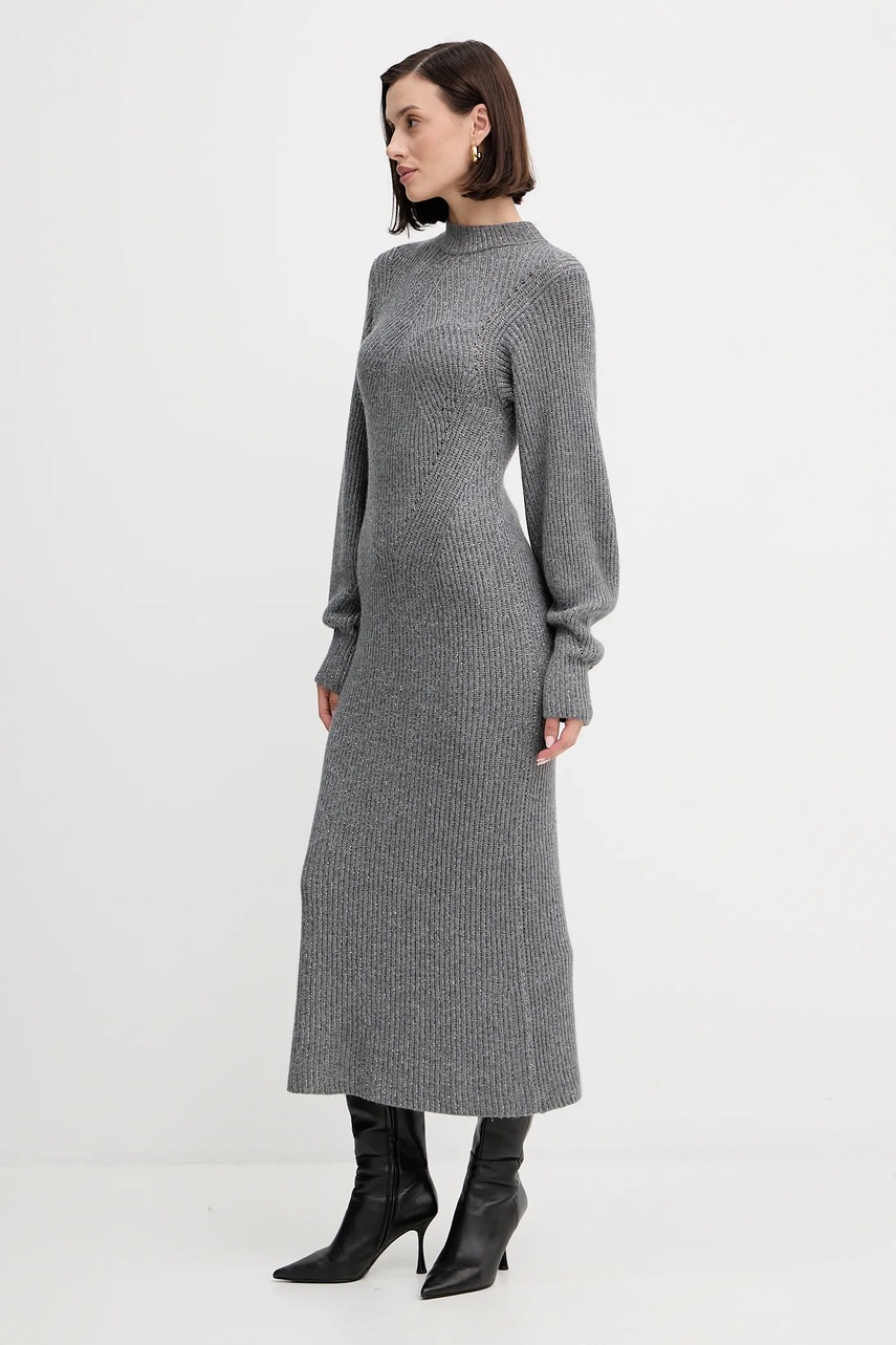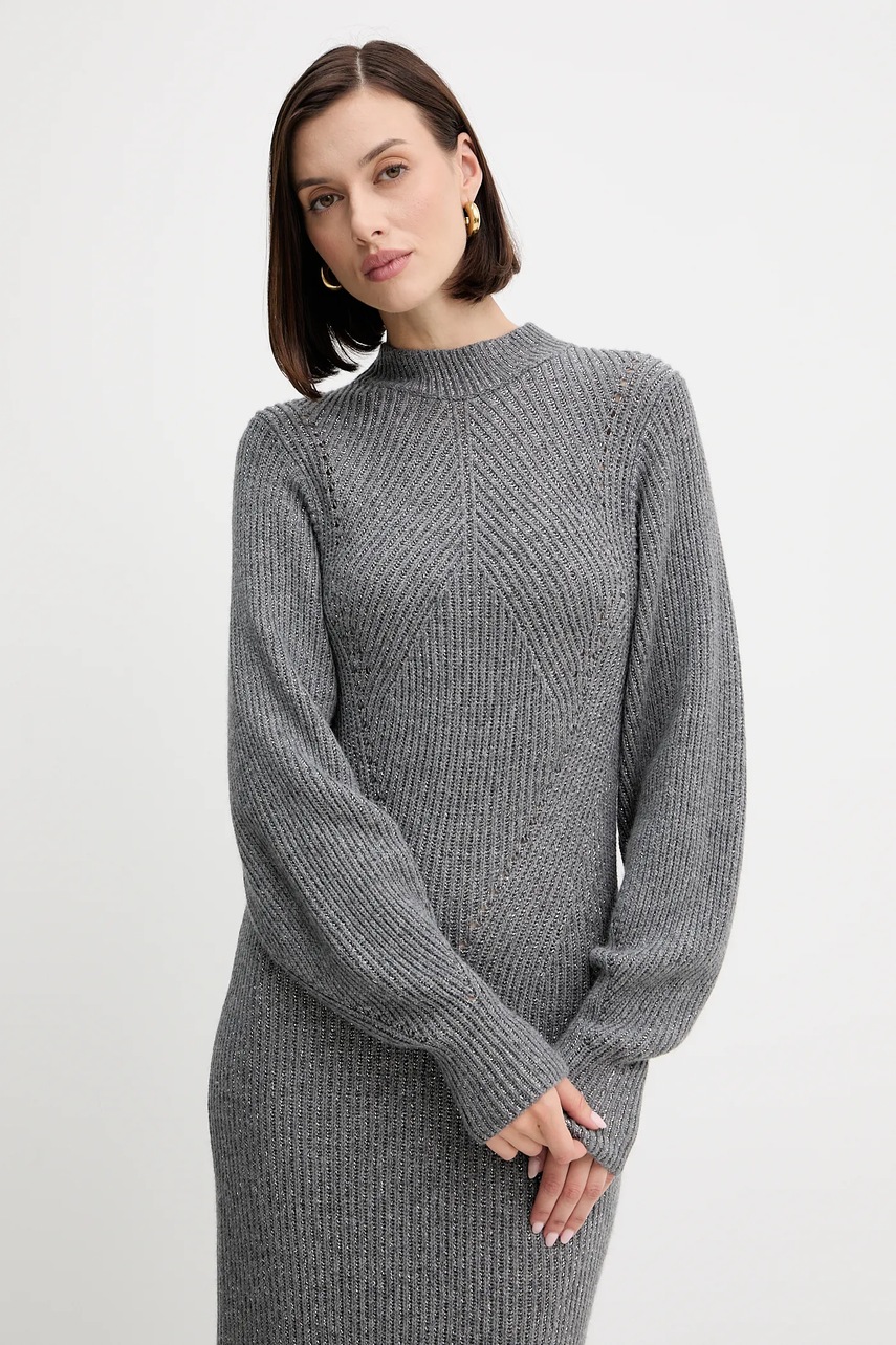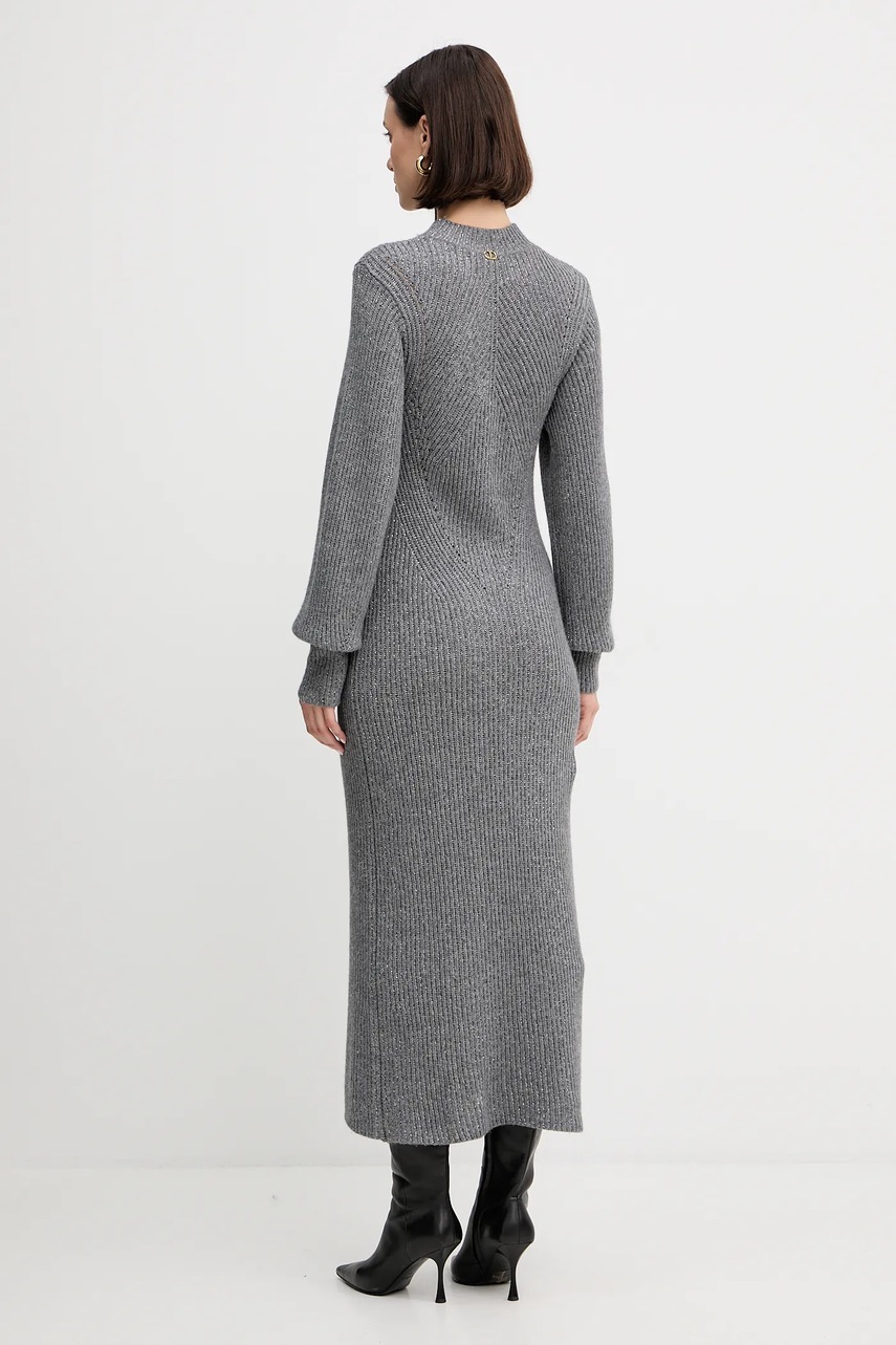 Twinset sukienka z wełną kolor szary maxi prosta 252TT3460