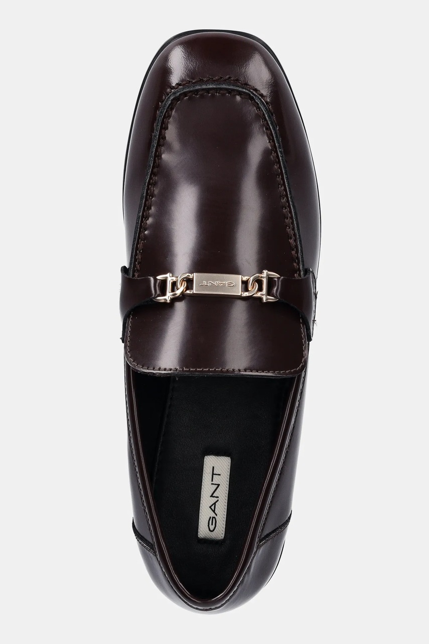Gant mokasyny skórzane Gimble damskie kolor bordowy na płaskim obcasie 31571125