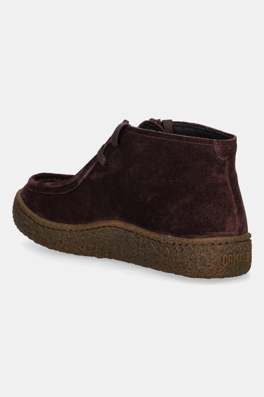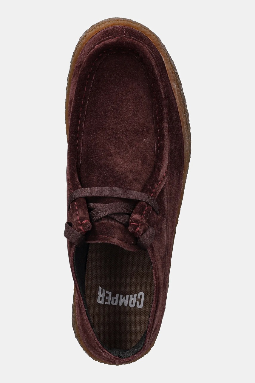 Camper półbuty zamszowe Peu Terreno damskie kolor bordowy na płaskim obcasie K400813-001
