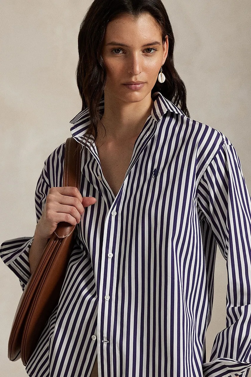 Polo Ralph Lauren koszula bawełniana damska kolor granatowy relaxed z kołnierzykiem klasycznym 211910743