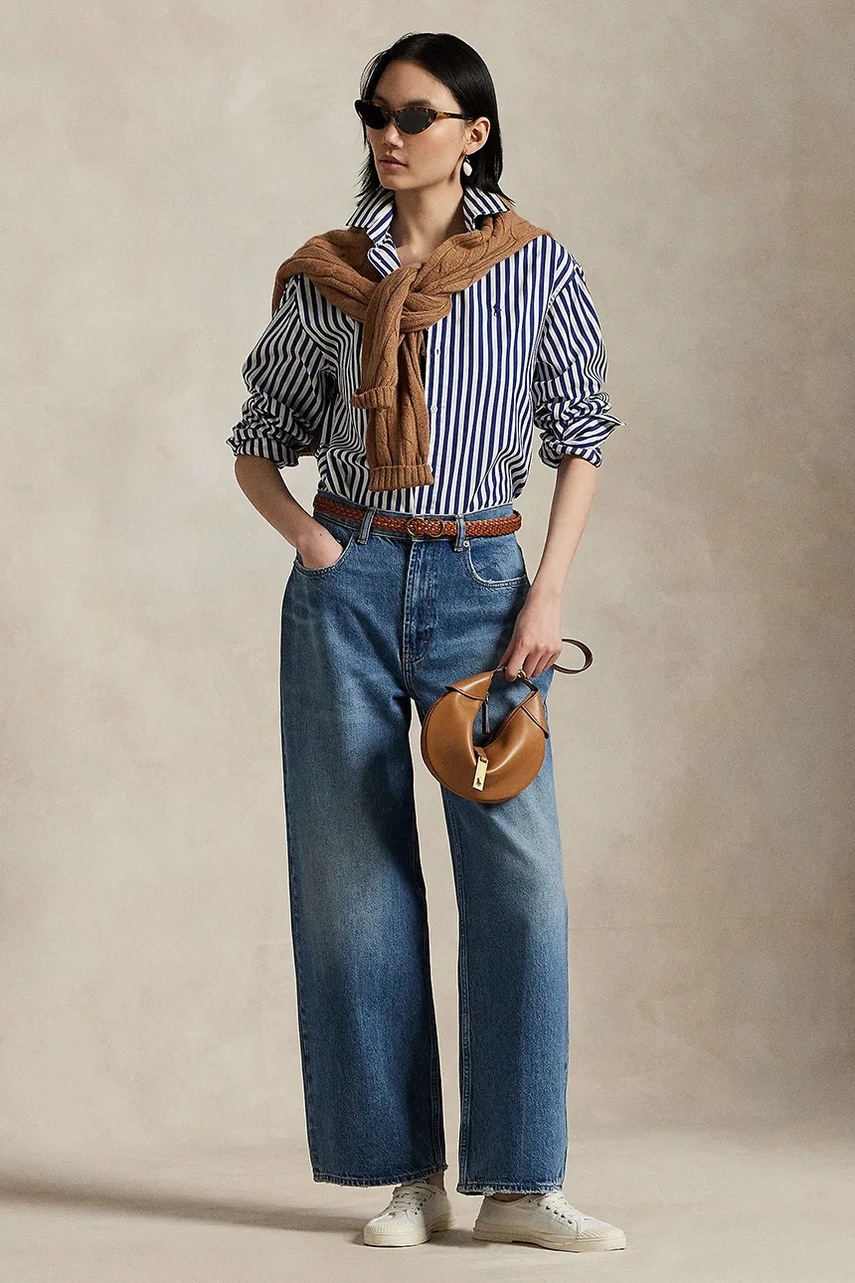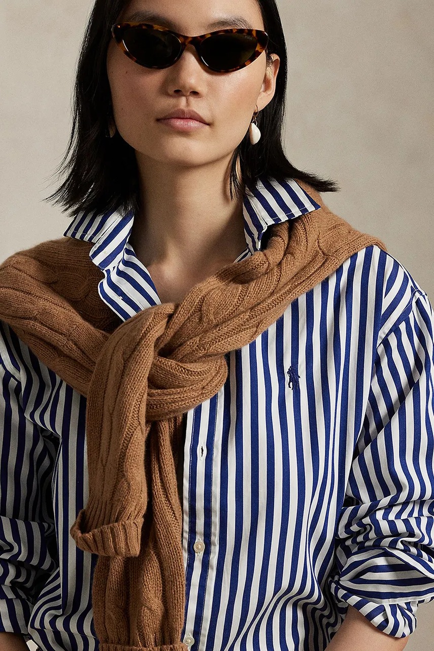 Polo Ralph Lauren koszula bawełniana damska kolor niebieski relaxed z kołnierzykiem klasycznym 211910743