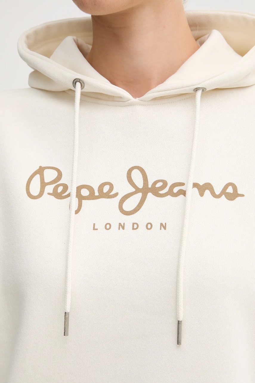 Pepe Jeans bluza damska kolor beżowy z kapturem z nadrukiem PL5800001