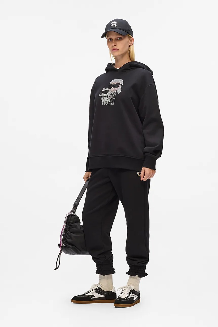 Karl Lagerfeld bluza bawełniana IKON damska kolor czarny z kapturem z aplikacją A4W20070