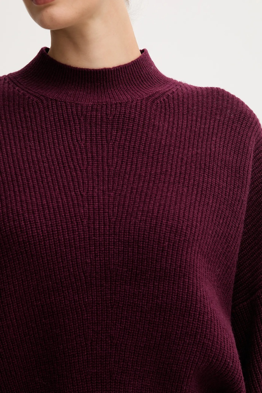 OUI sweter z dodatkiem wełny damski kolor bordowy z golfem 94268