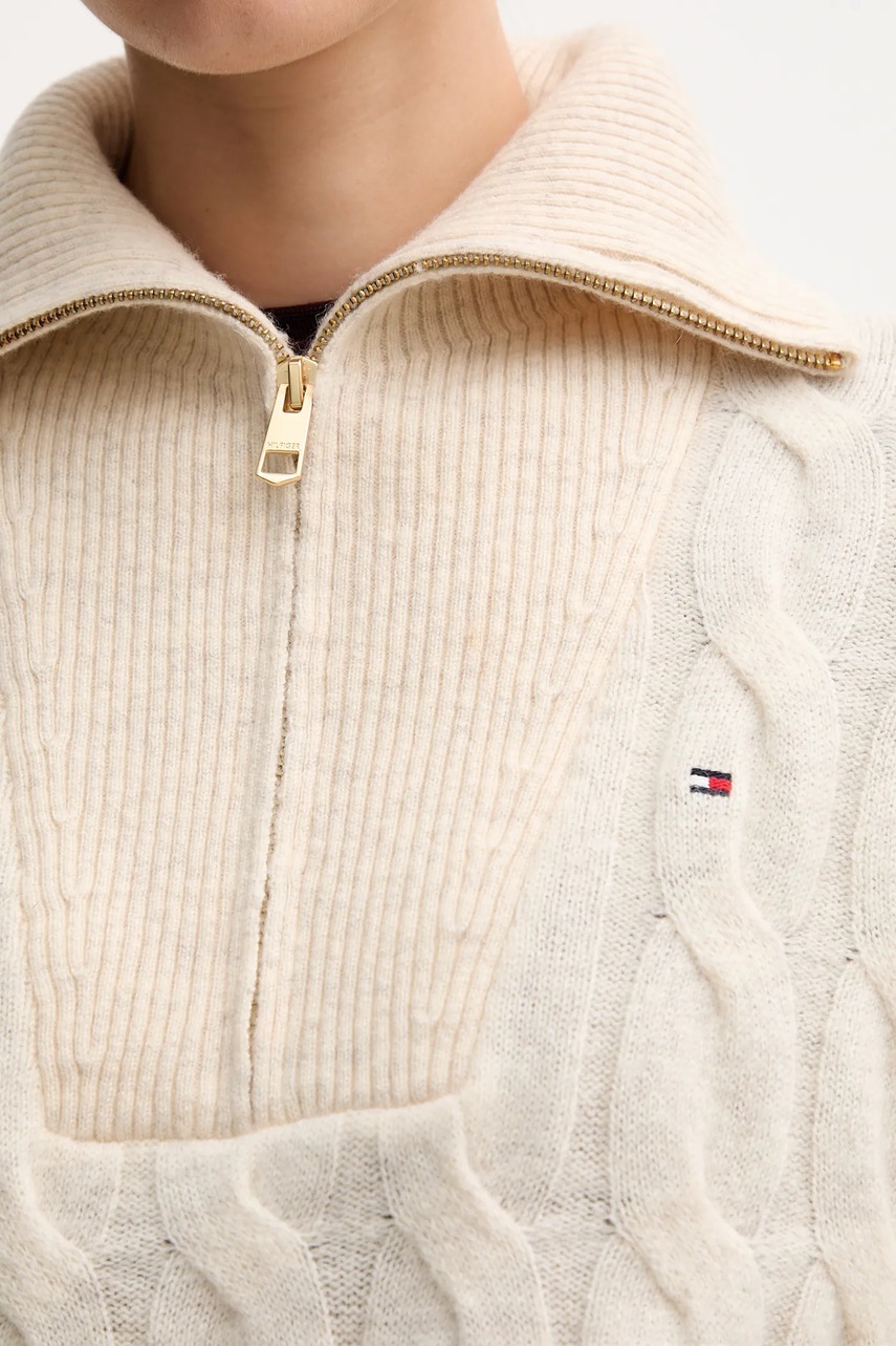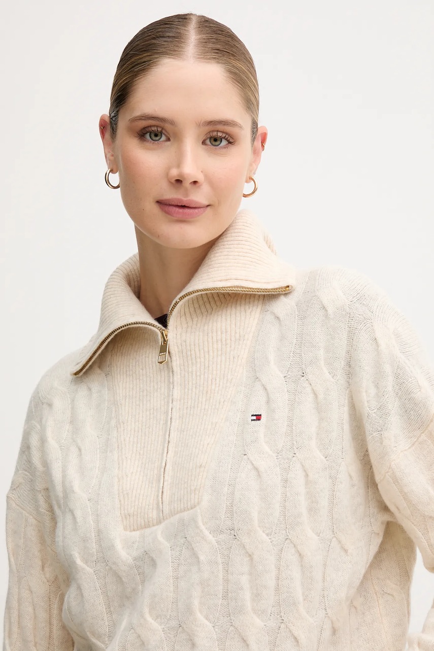 Tommy Hilfiger sweter wełniany damski kolor beżowy WW0WW46425