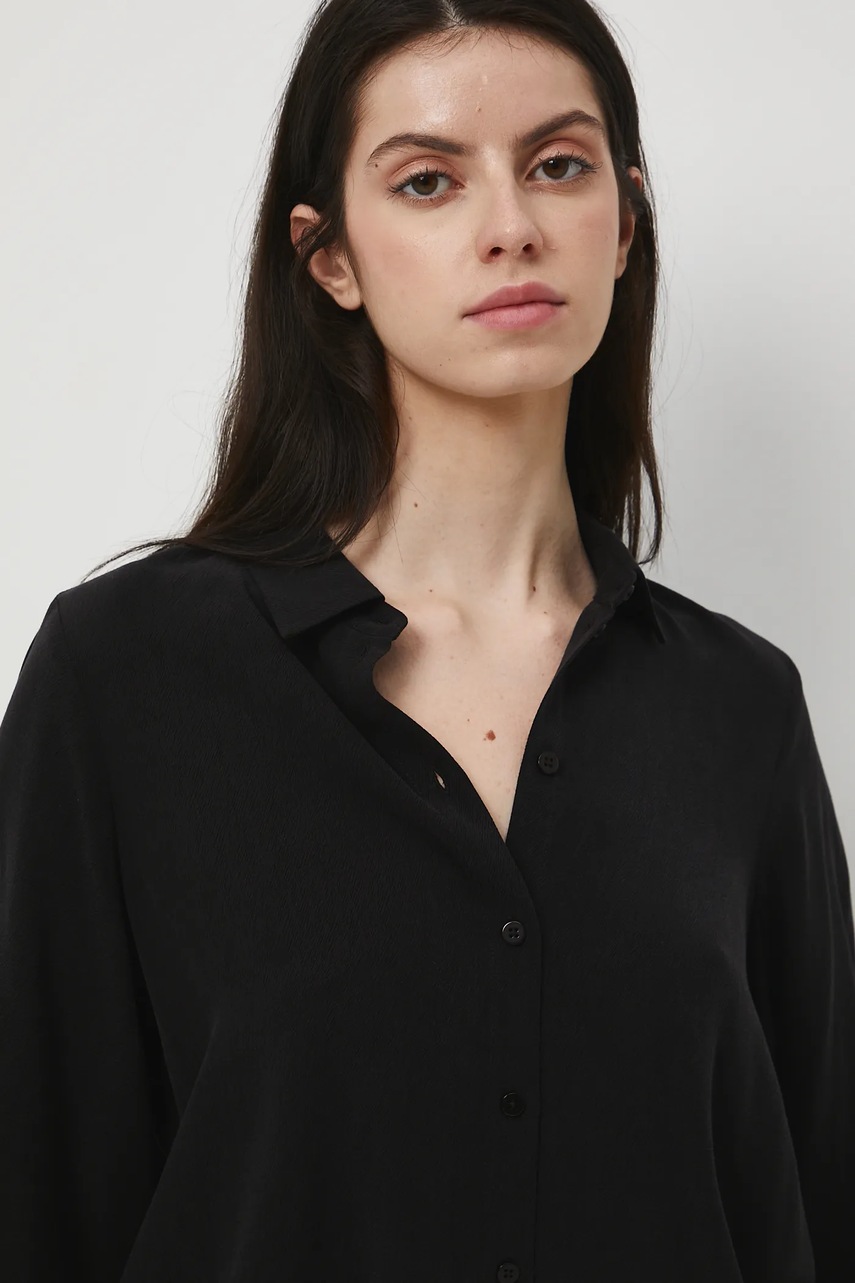 Medicine koszula damska kolor czarny regular z kołnierzykiem klasycznym