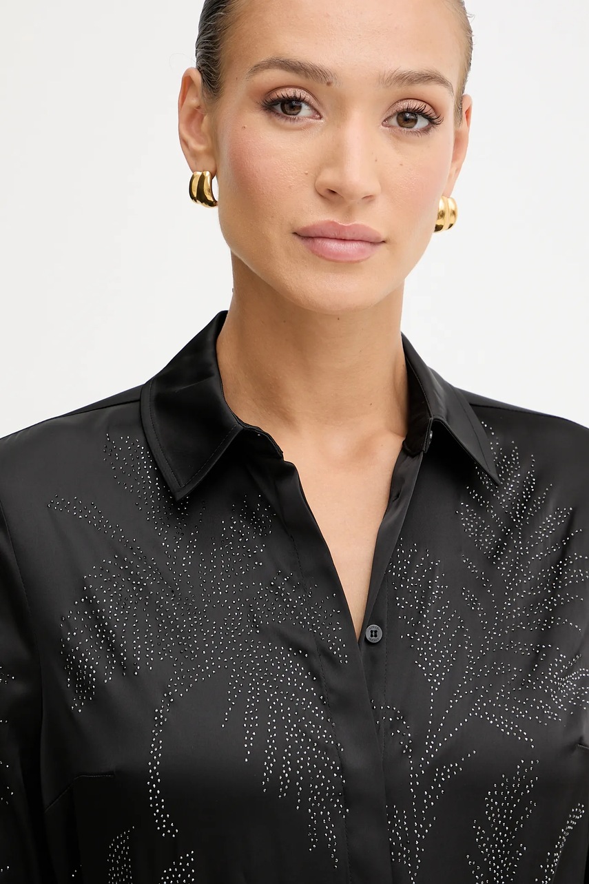 Guess koszula AGNES damska kolor czarny regular z kołnierzykiem klasycznym W5YH40 WFQC2