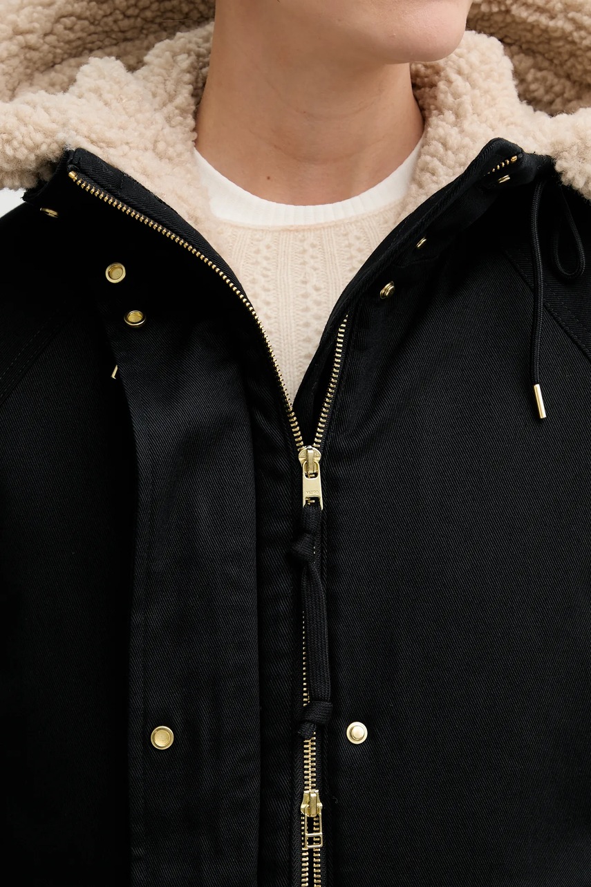 - Podwyższony kołnierz i nieodpinany kaptur gwarantują dodatkową ochronę przed chłodem.